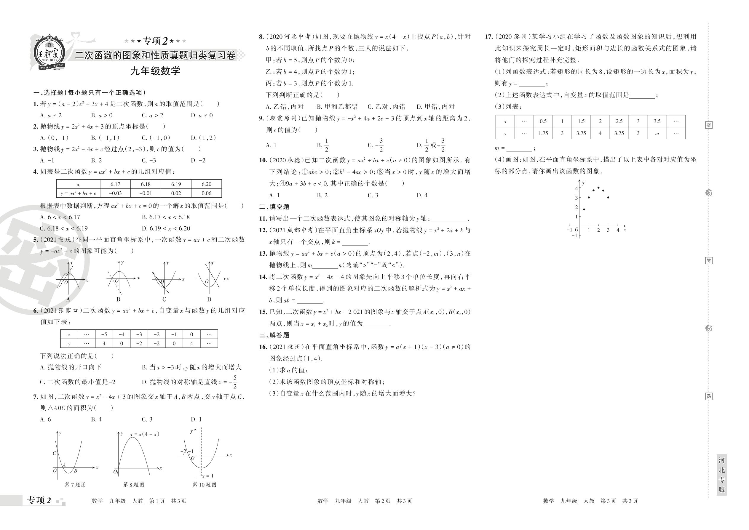 2021-2022学年第一学期王朝霞期末专项卷——二次函数的图象和性质真题归类复习卷九年级数学(人教版)【2】