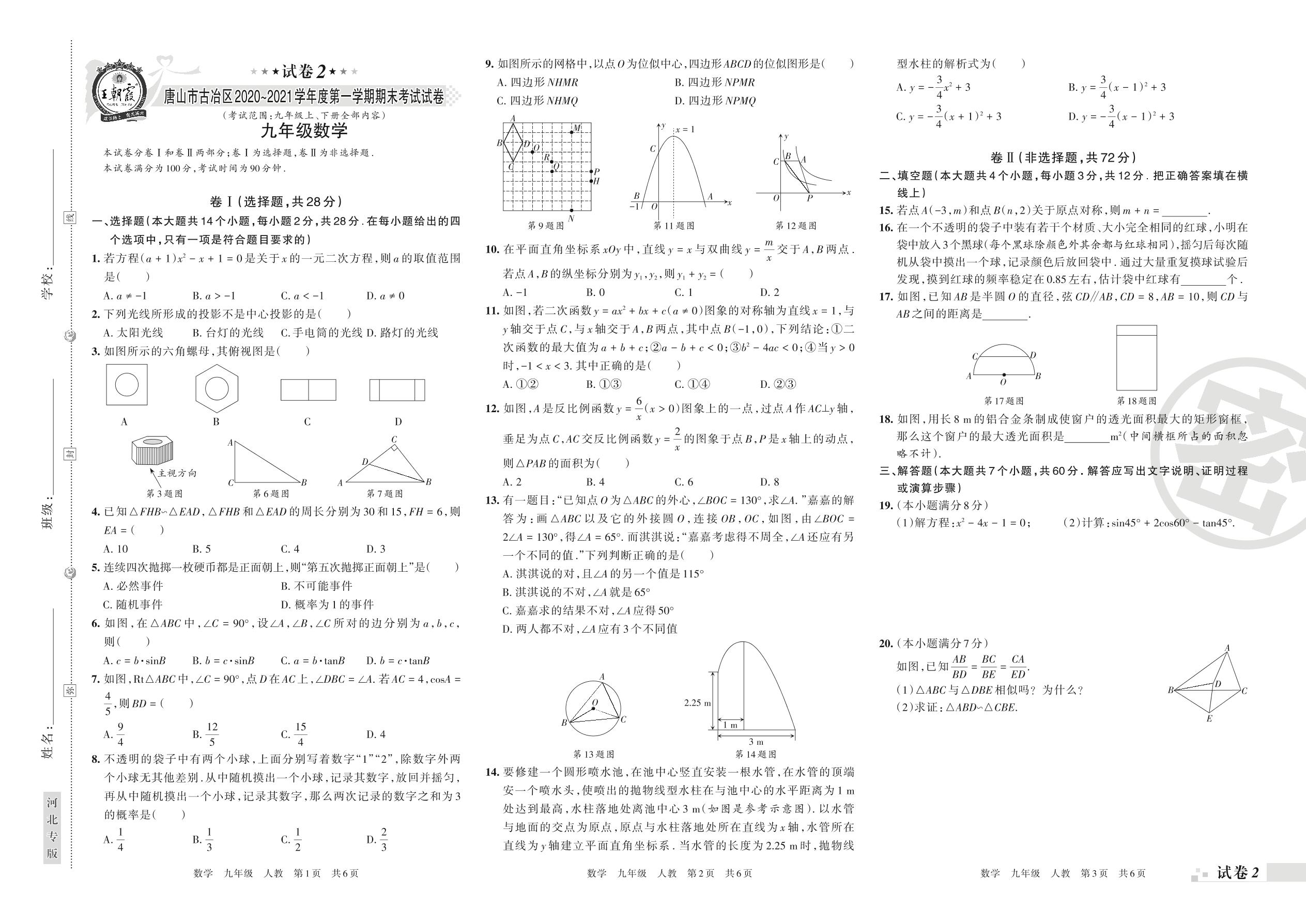 唐山市古冶区2020~2021学年度第一学期期末考试试卷九年级数学(人教版)【2】