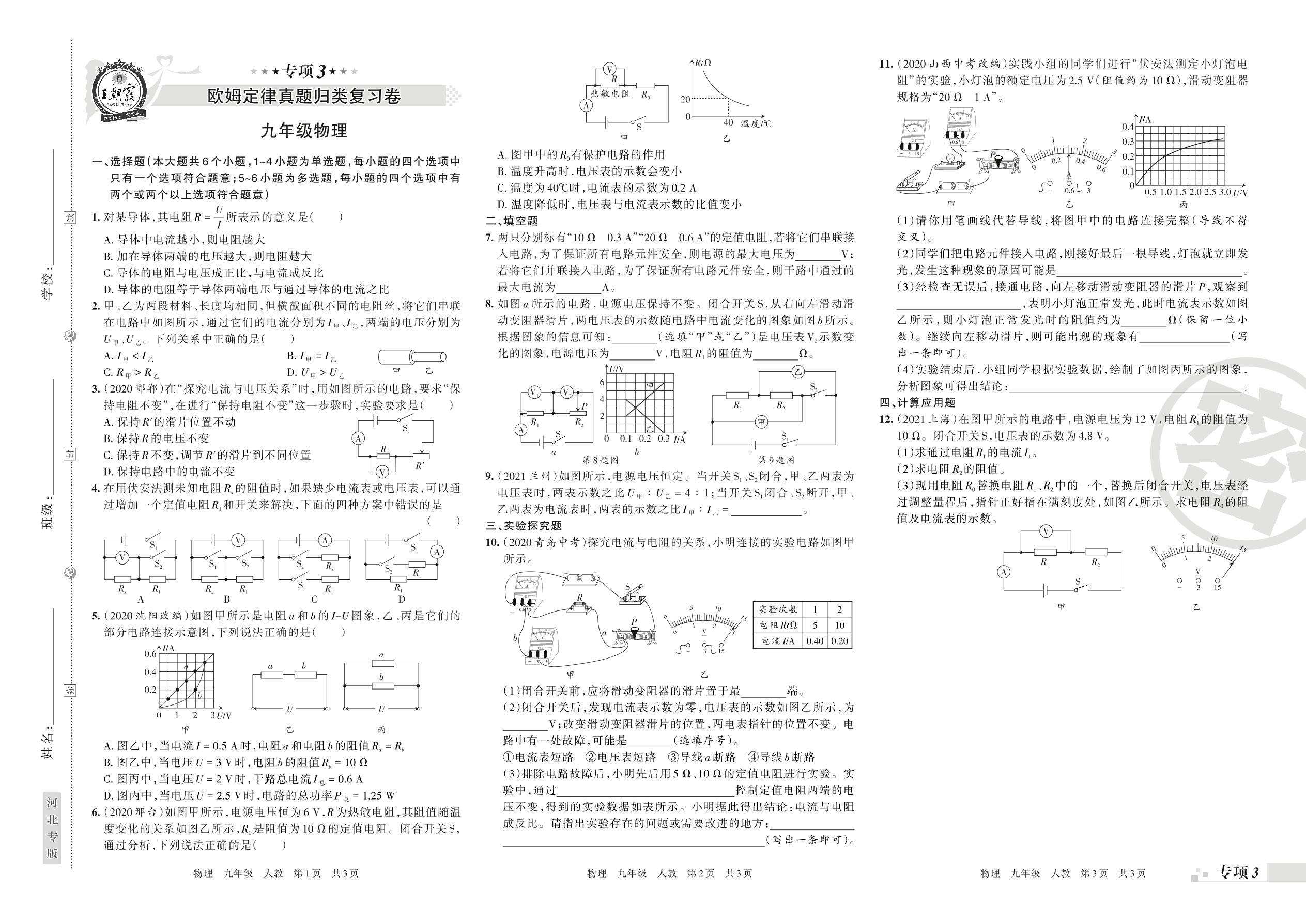 2021-2022学年第一学期王朝霞期末专项卷——欧姆定律真题归类复习卷九年级物理(人教版)【3】