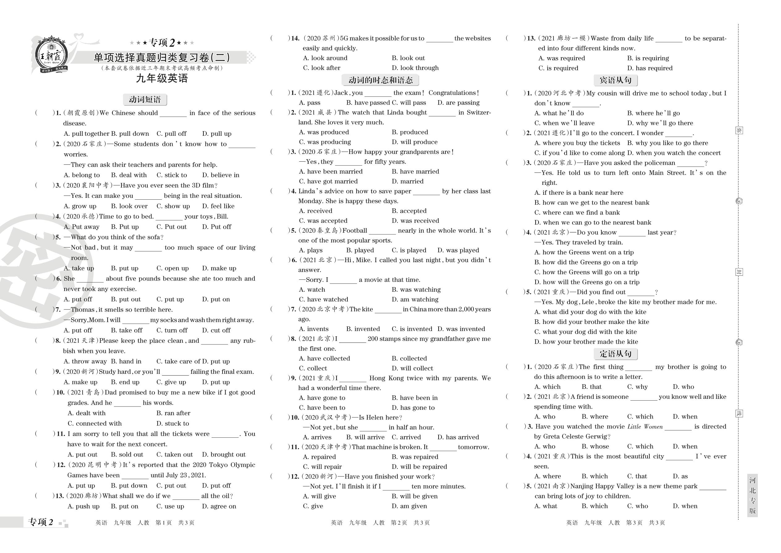 2021-2022学年第一学期王朝霞期末专项卷——单项选择真题归类复习卷(二)九年级英语(人教版)【2】