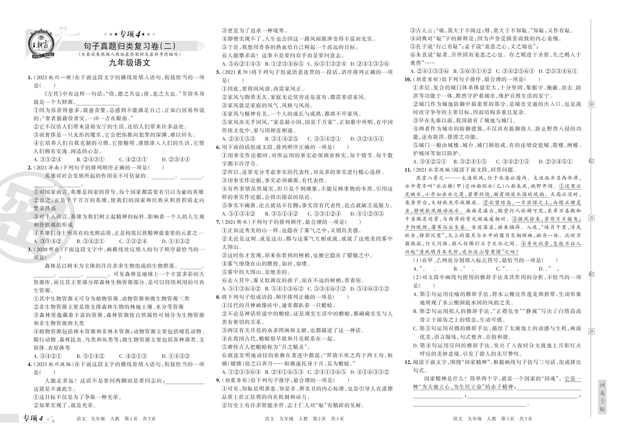 2021-2022学年第一学期王朝霞期末专项卷——句子真题归类复习卷(二)九年级语文(人教版)【4】
