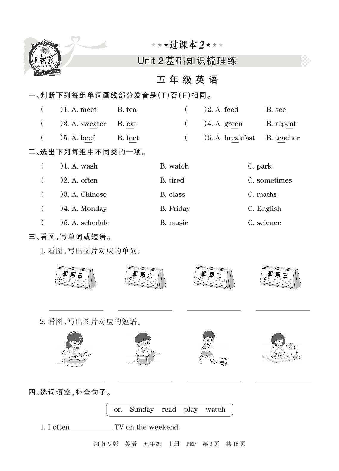 王朝霞期末过课本——Unit 2基础知识梳理练五年级上册英语(人教PEP版)_R211130105022570【2】