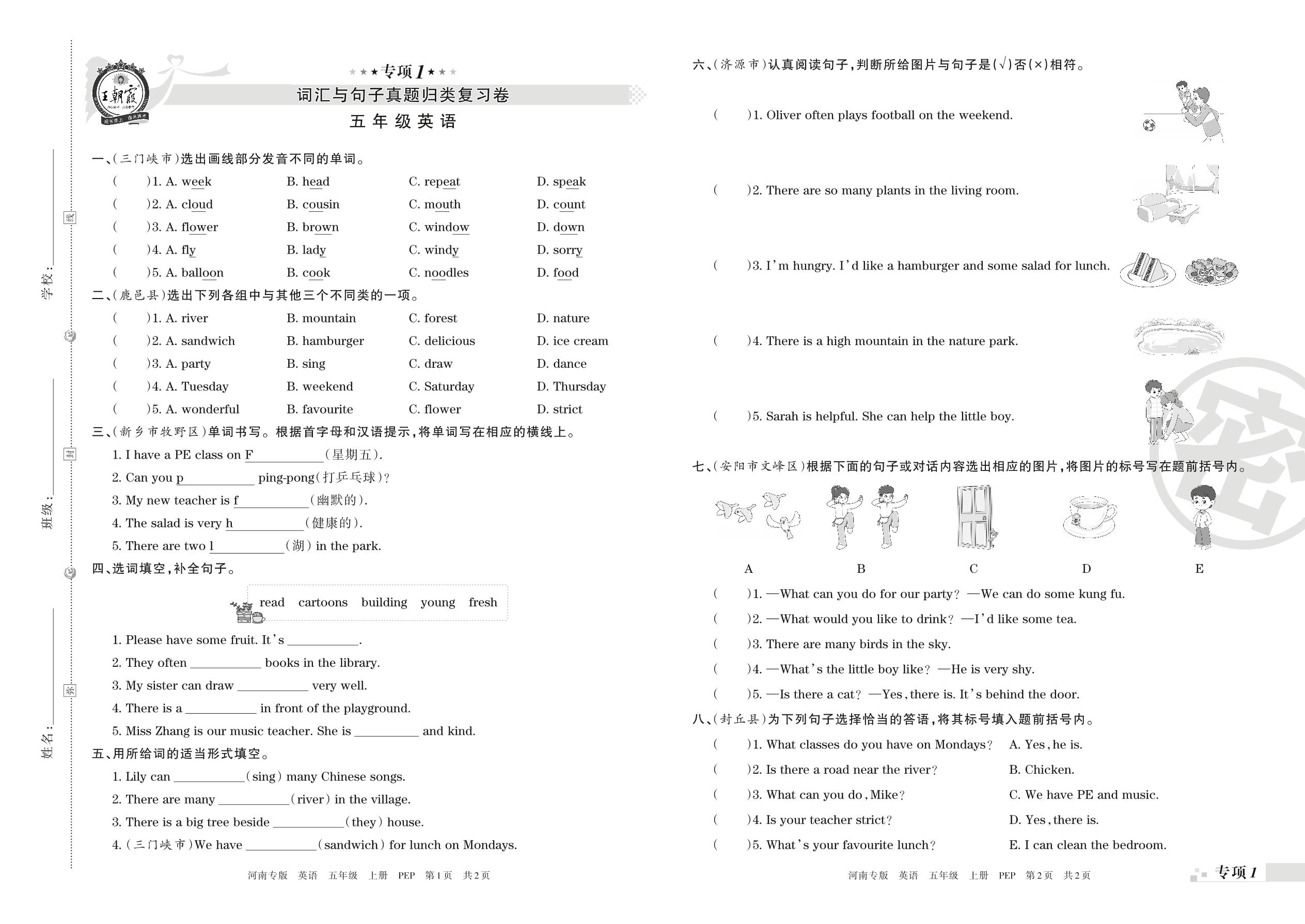 王朝霞期末专项卷——词汇与句子真题归类复习卷五年级上册英语(人教PEP版)_R211130105022498【1】