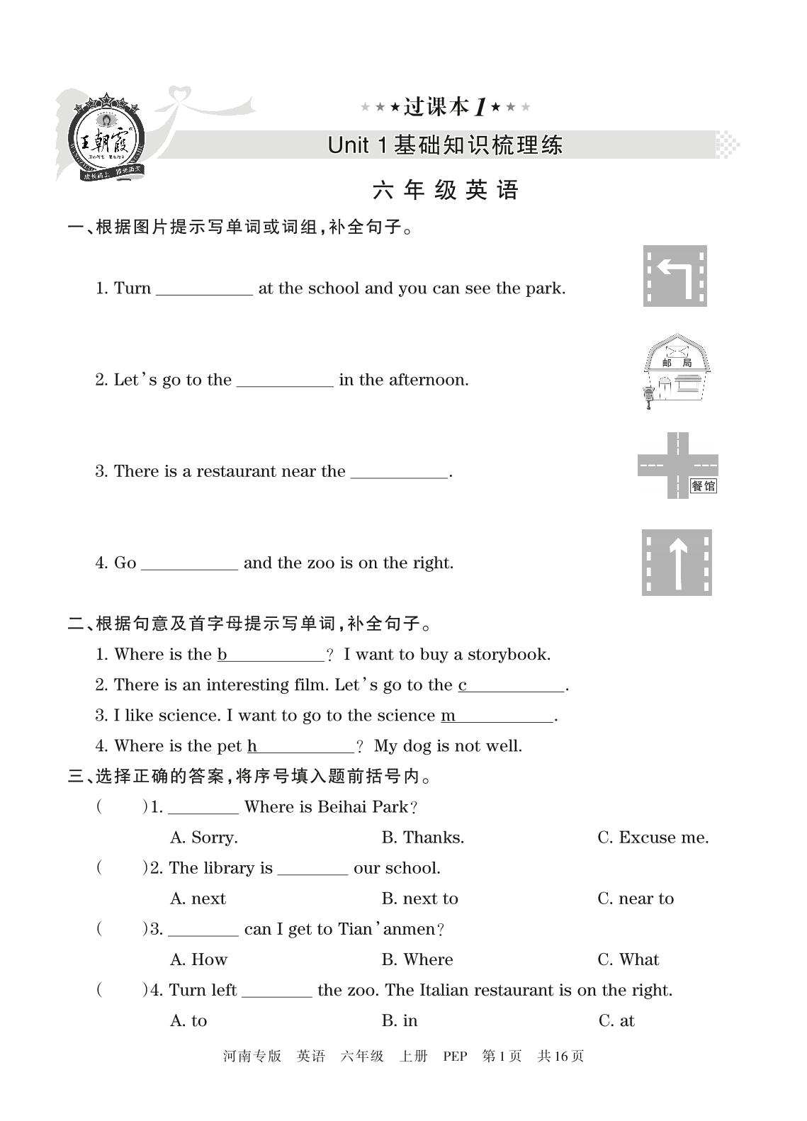 王朝霞期末过课本——Unit 1基础知识梳理练六年级上册英语(人教PEP版)_R211130105641729【1】