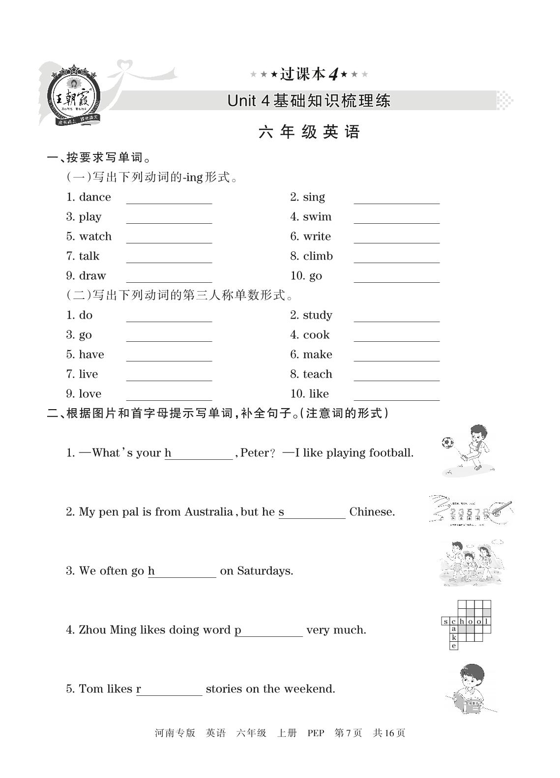王朝霞期末过课本——Unit 4基础知识梳理练六年级上册英语(人教PEP版)_R211130105641838【4】