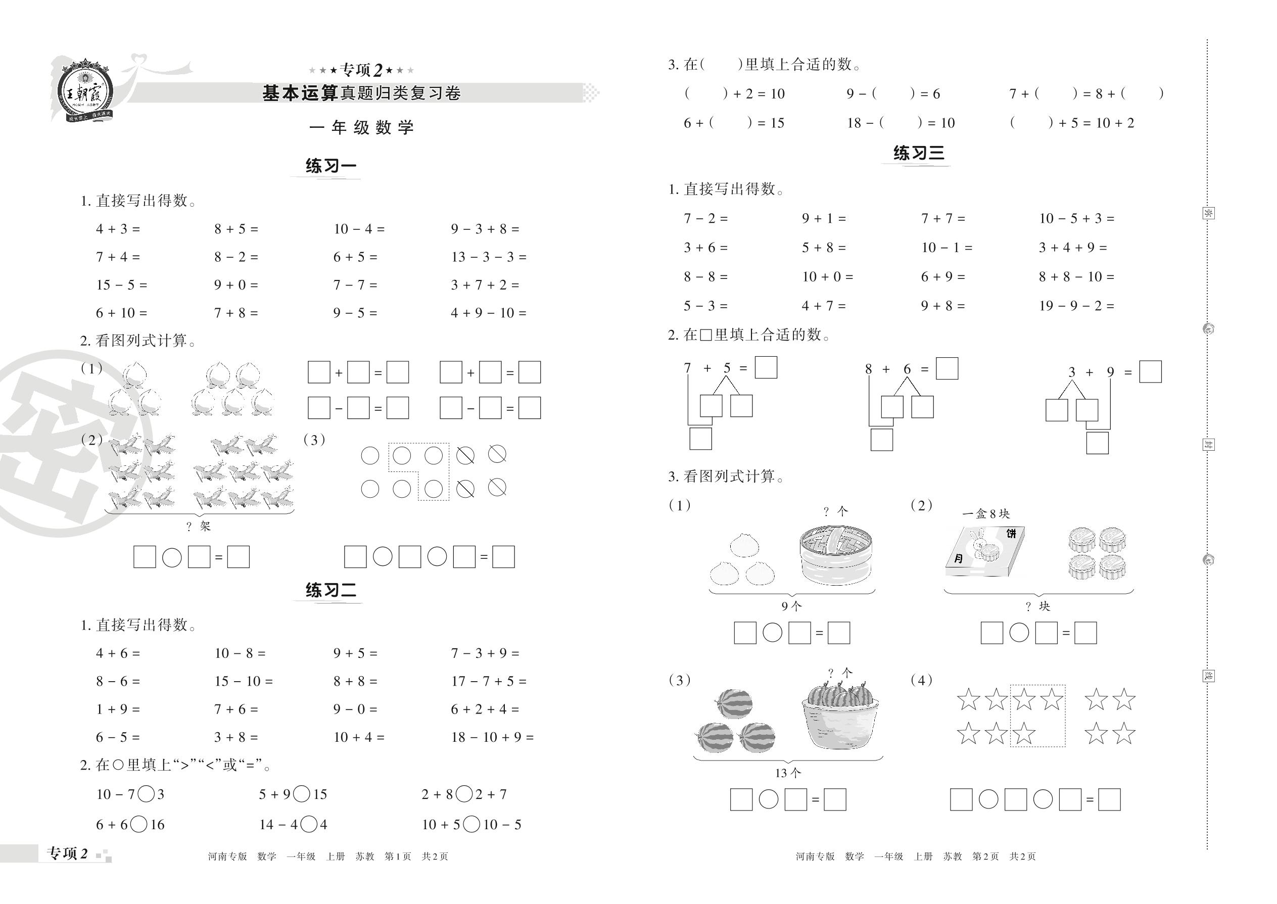 王朝霞期末专项卷——基本运算真题归类复习卷一年级上册数学(苏教版)_R211130110937804【2】