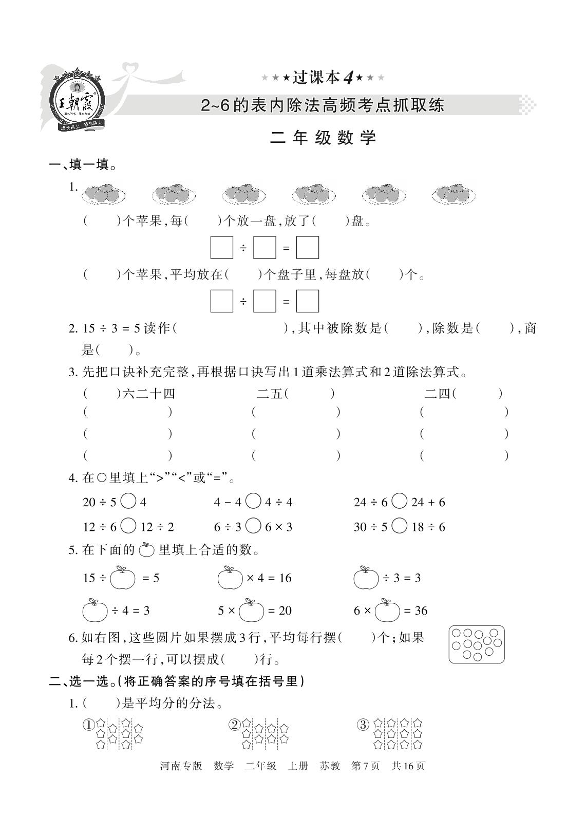 王朝霞期末过课本——2~6的表内除法高频考点抓取练二年级上册数学(苏教版)_R211130111455916【4】