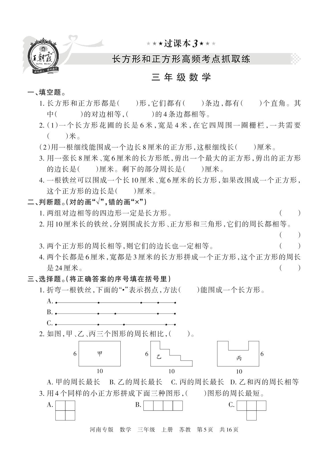 王朝霞期末过课本——长方形和正方形高频考点抓取练三年级上册数学(苏教版)_R211130111829492【3】