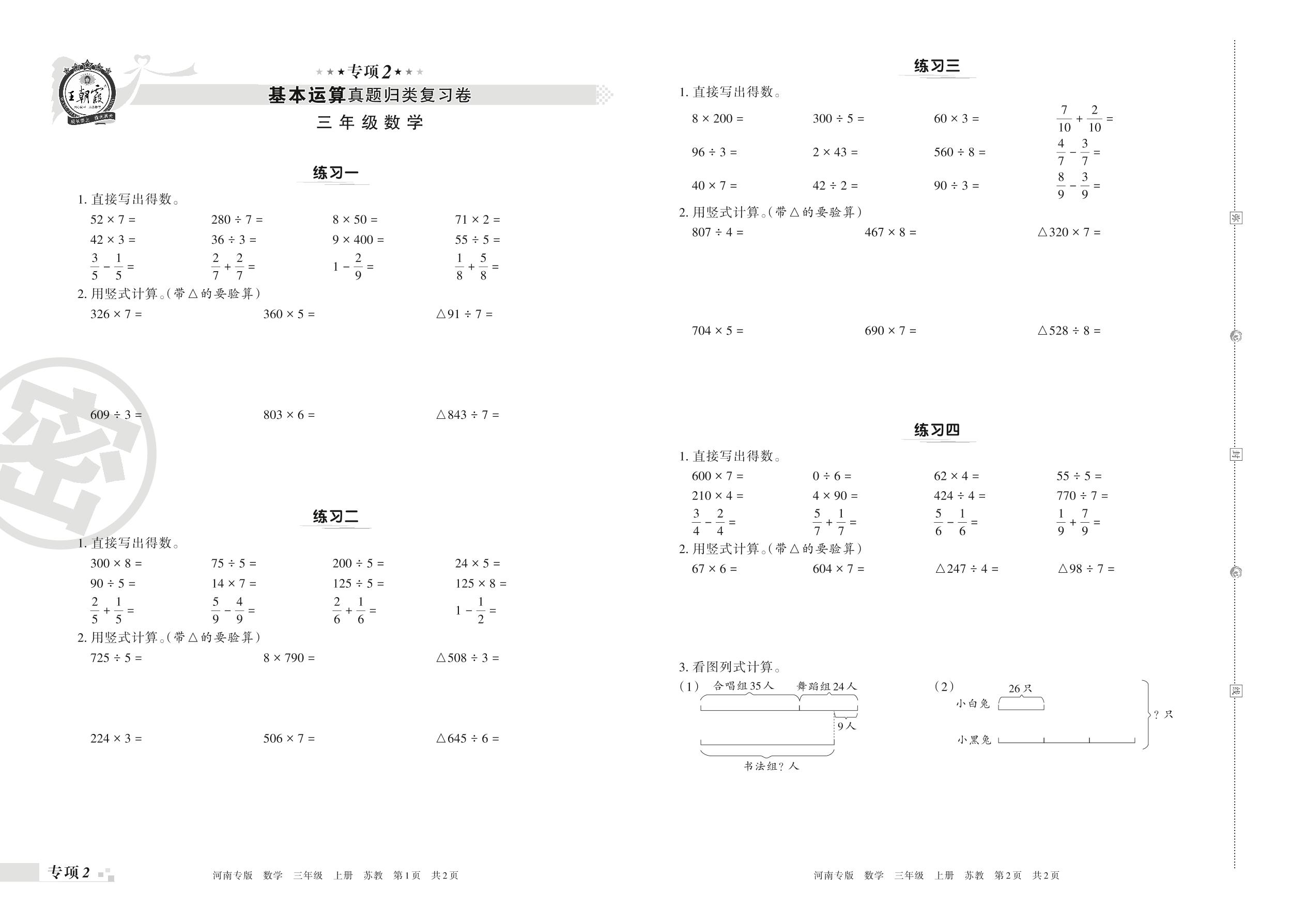 王朝霞期末专项卷——基本运算真题归类复习卷三年级上册数学(苏教版)_R211130111830845【2】