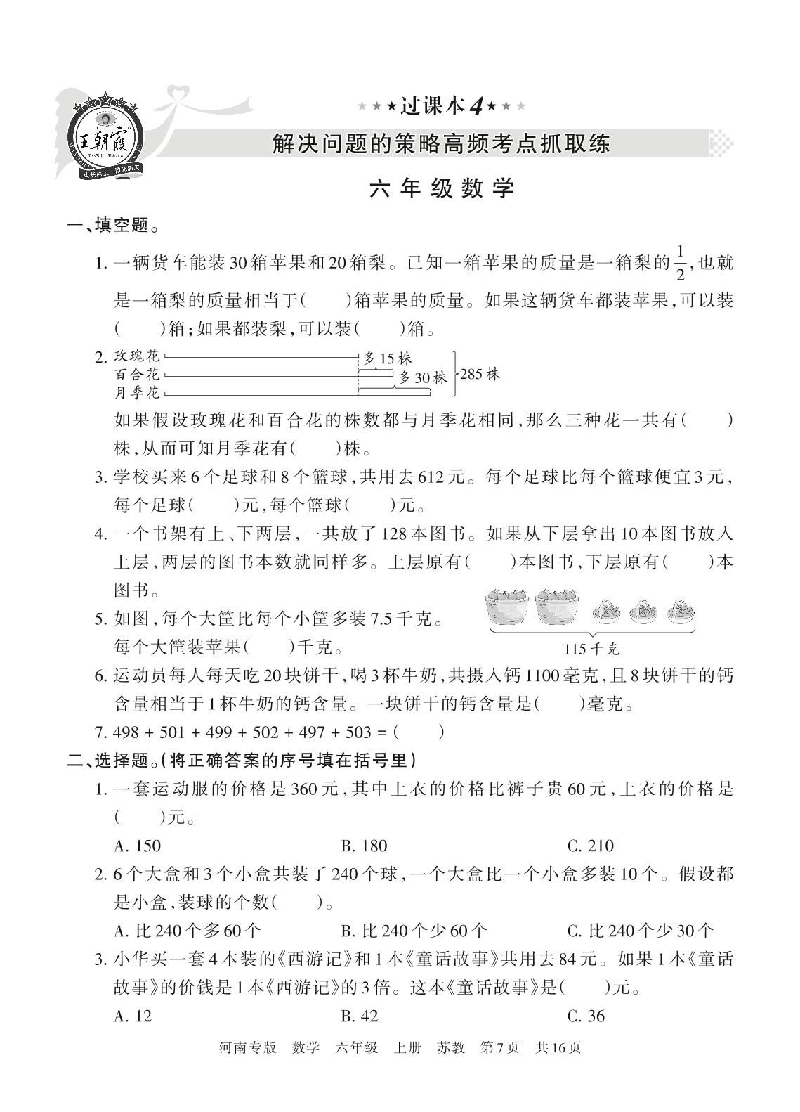 王朝霞期末过课本——解决问题的策略高频考点抓取练六年级上册数学(苏教版)_R211130112901172【4】