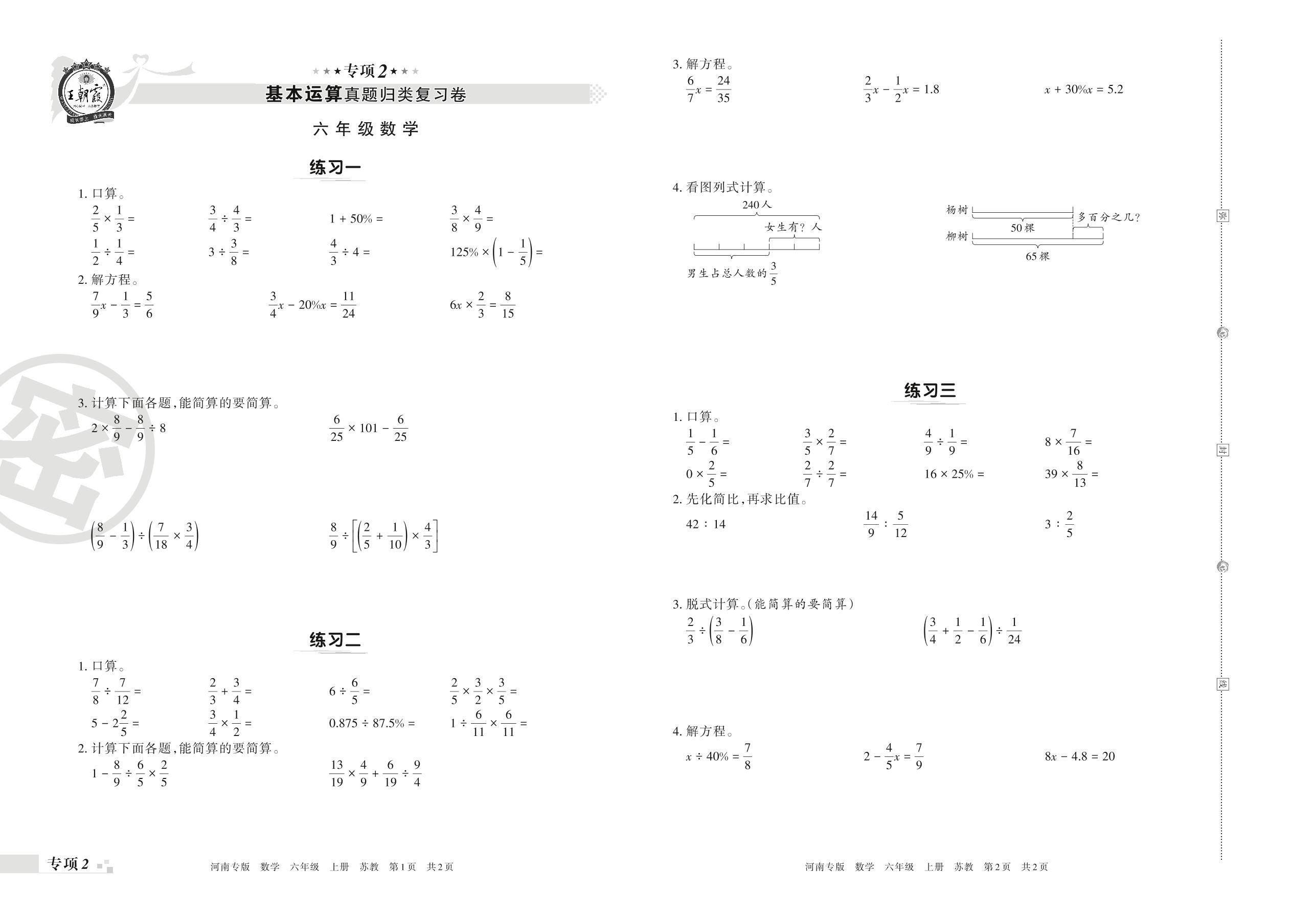 王朝霞期末专项卷——基本运算真题归类复习卷六年级上册数学(苏教版)_R211130112901061【2】
