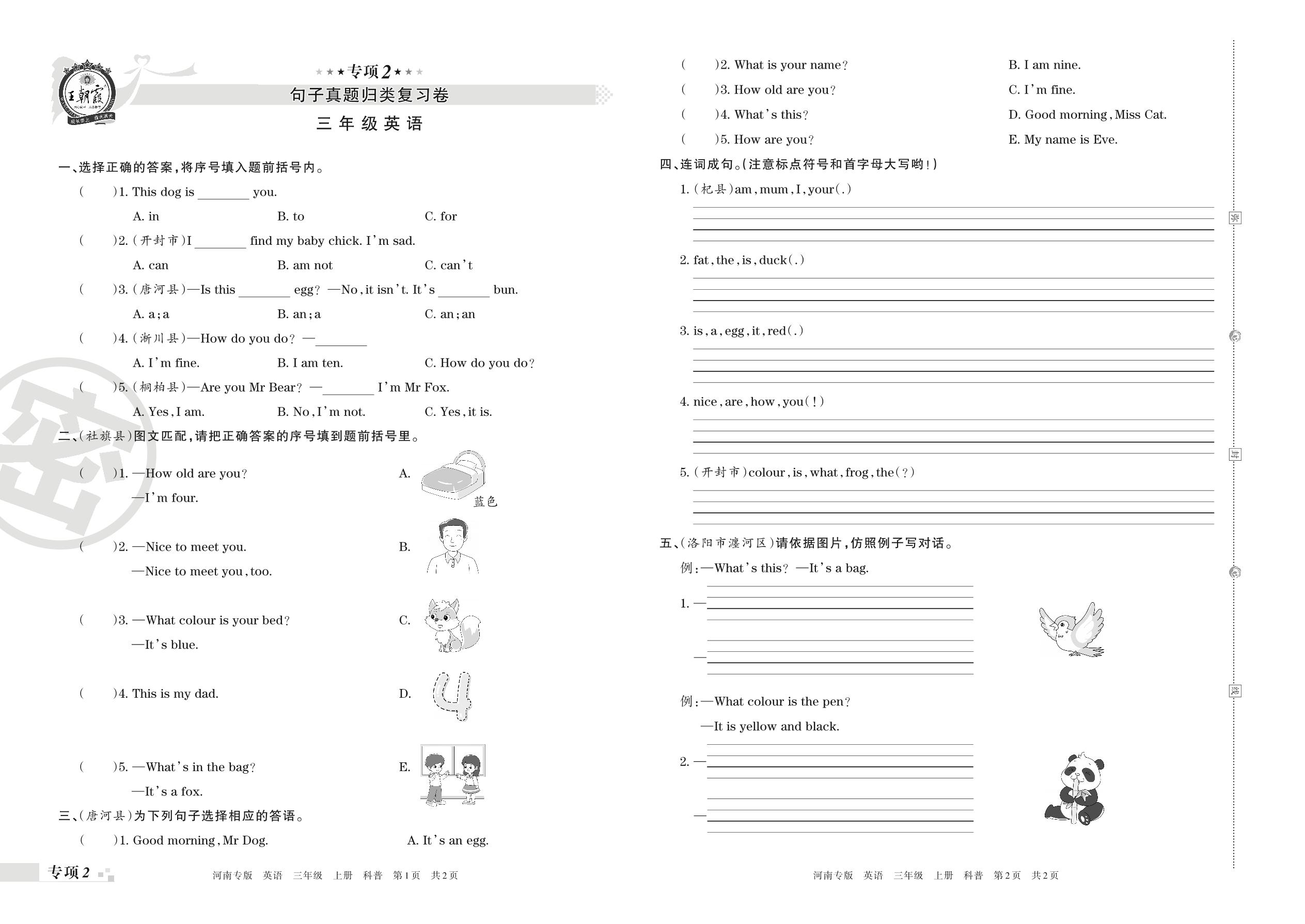 王朝霞期末专项卷——句子真题归类复习卷三年级上册英语(科普版)_R211130135812005【2】