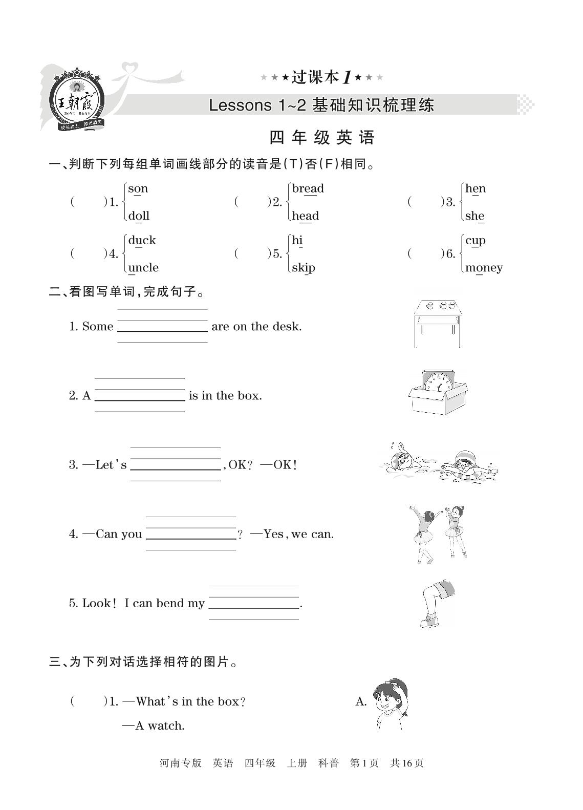 王朝霞期末过课本——Lessons 1~2 基础知识梳理练四年级上册英语(科普版)【1】