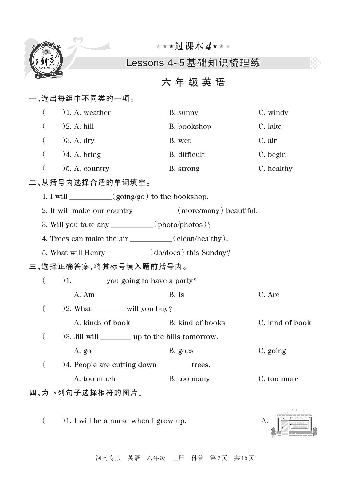 王朝霞期末过课本——Lessons 4~5基础知识梳理练六年级上册英语(科普版)_R211130141053179【4】