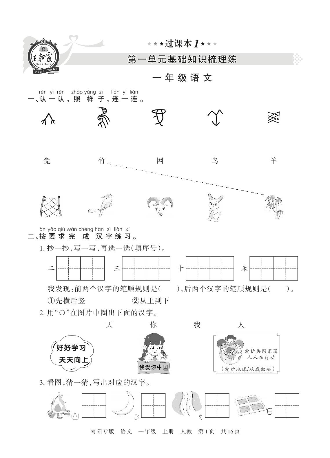 王朝霞期末过课本——第一单元基础知识梳理练一年级上册语文(人教版)_R211201102546445【1】