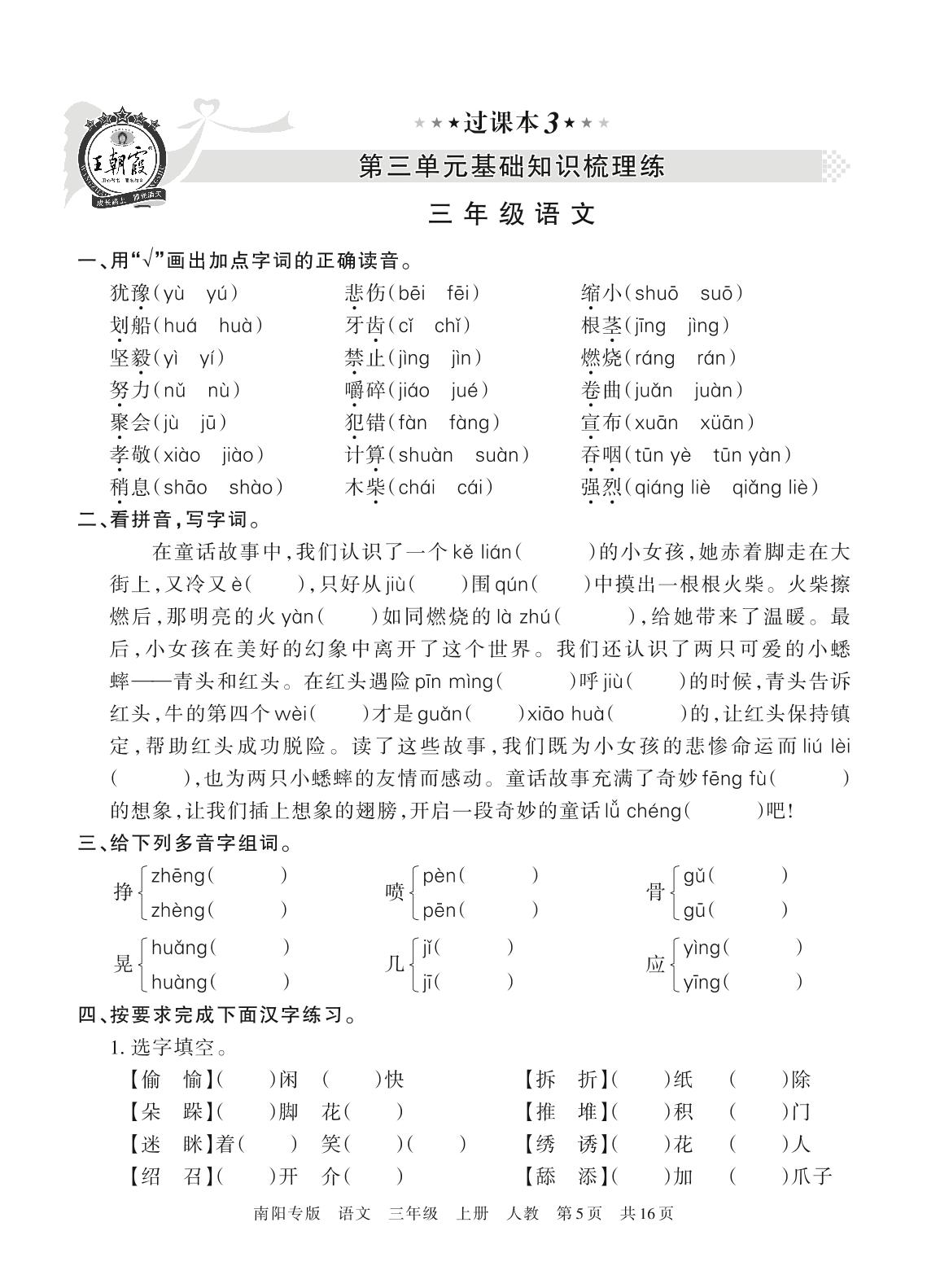 王朝霞期末过课本——第三单元基础知识梳理练三年级上册语文(人教版)_R211201103856665【3】