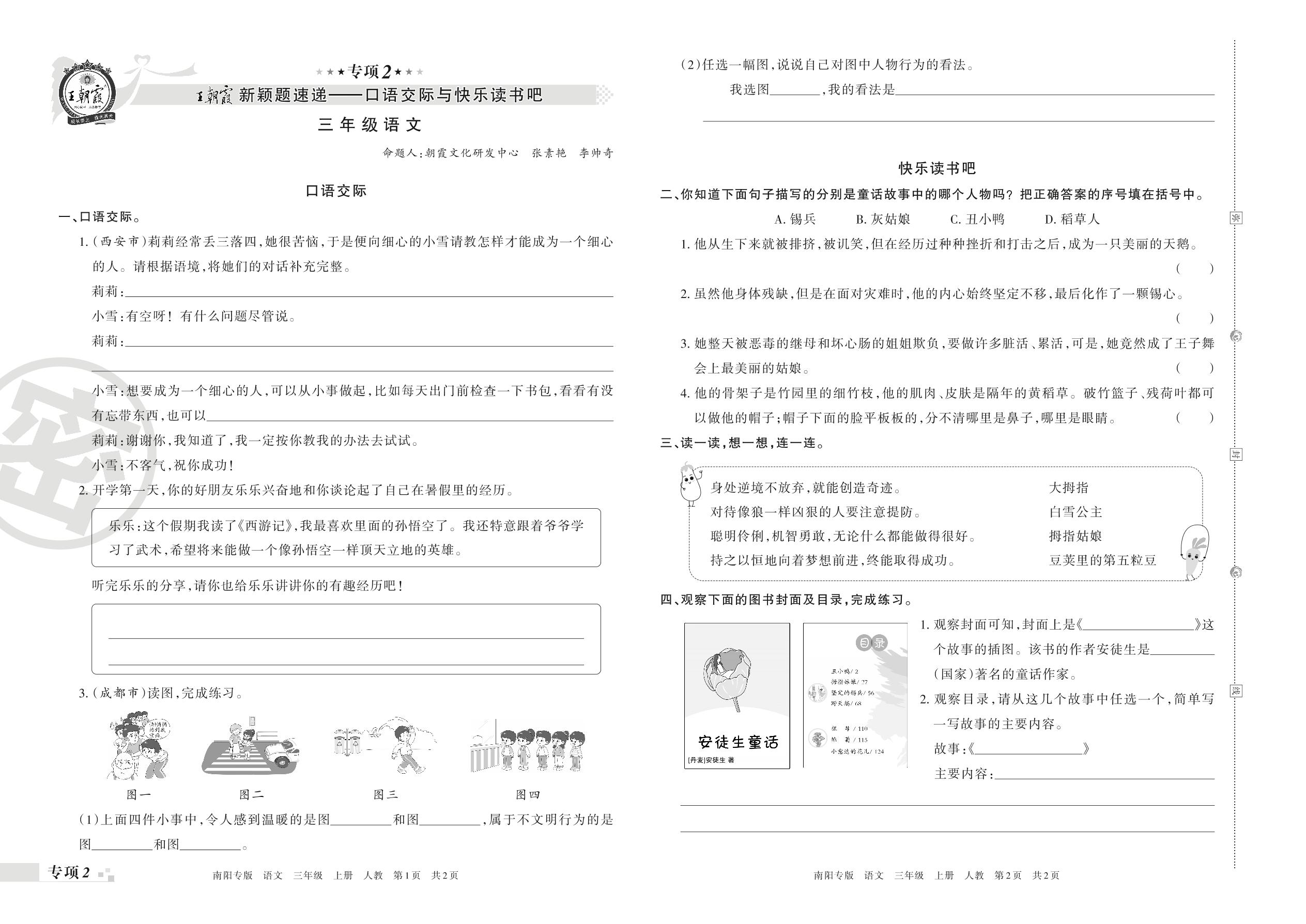 王朝霞期末专项卷——新颖题速递:口语交际与快乐读书吧三年级上册语文(人教版)_R211201103857591【2】