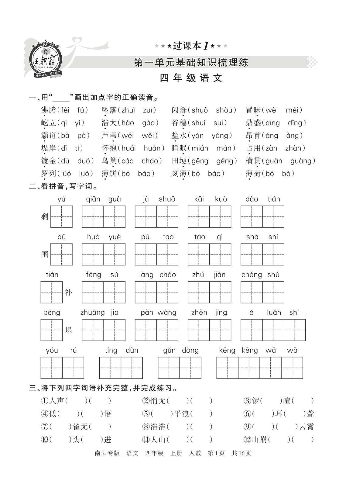 王朝霞期末过课本——第一单元基础知识梳理练四年级上册语文(人教版)_R211201104155591【1】
