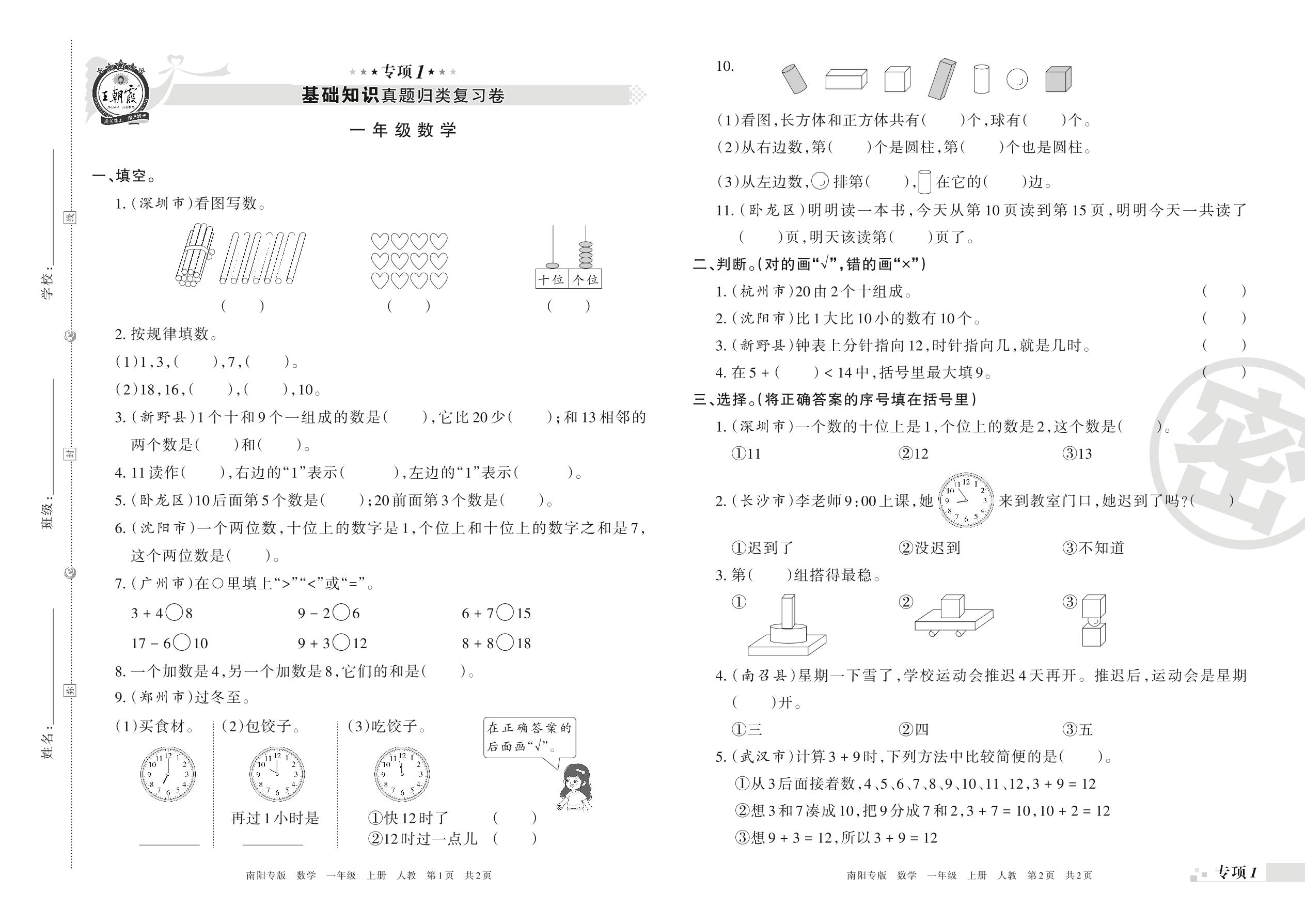 王朝霞期末专项卷——基础知识真题归类复习卷一年级上册数学(人教版)_R211201105600756【1】