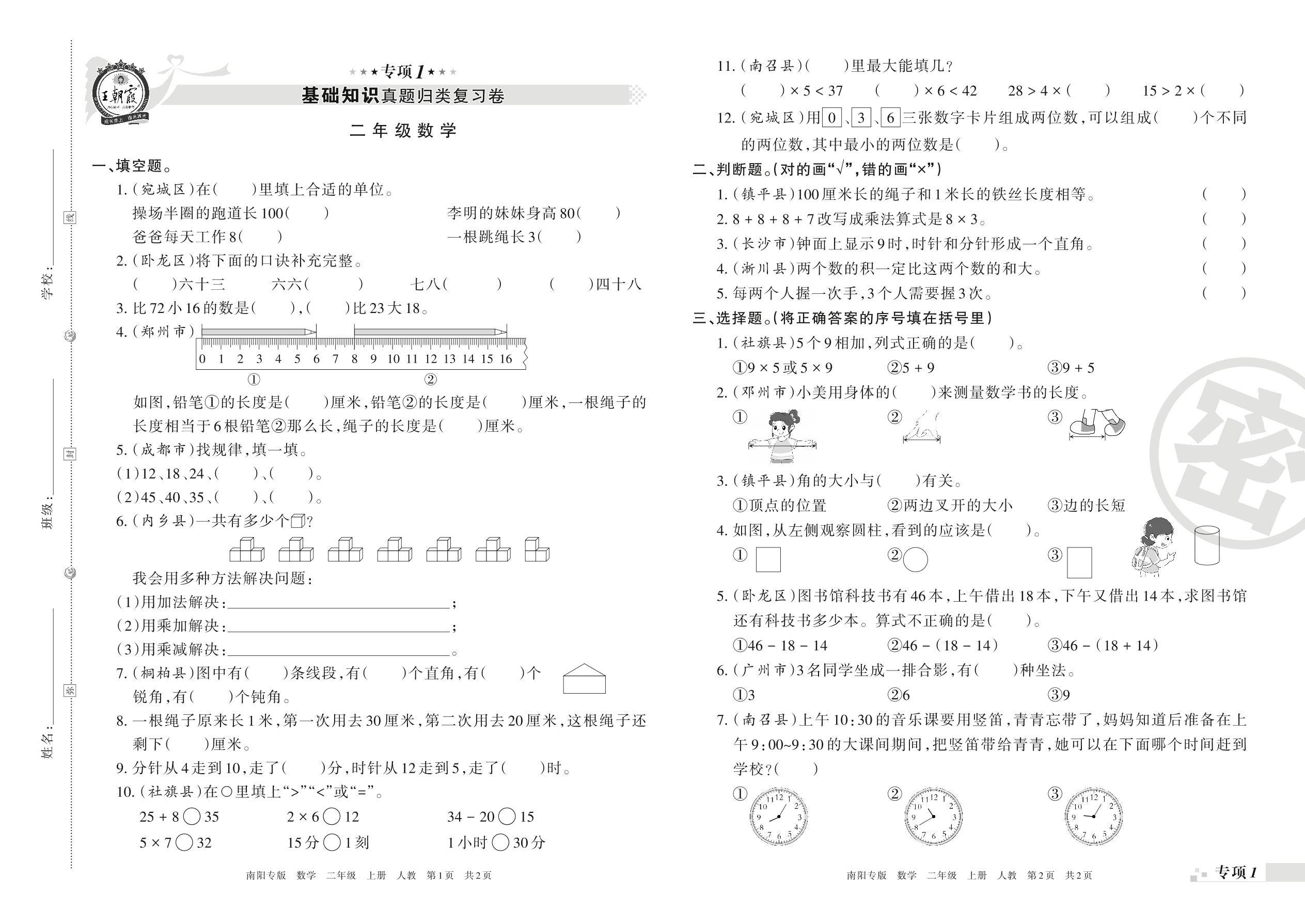 王朝霞期末专项卷——基础知识真题归类复习卷二年级上册数学(人教版)_R211201111053247【1】