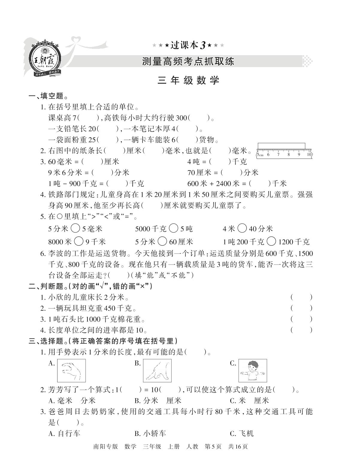王朝霞期末过课本——测量高频考点抓取练三年级上册数学(人教版)_R211201111520357【3】