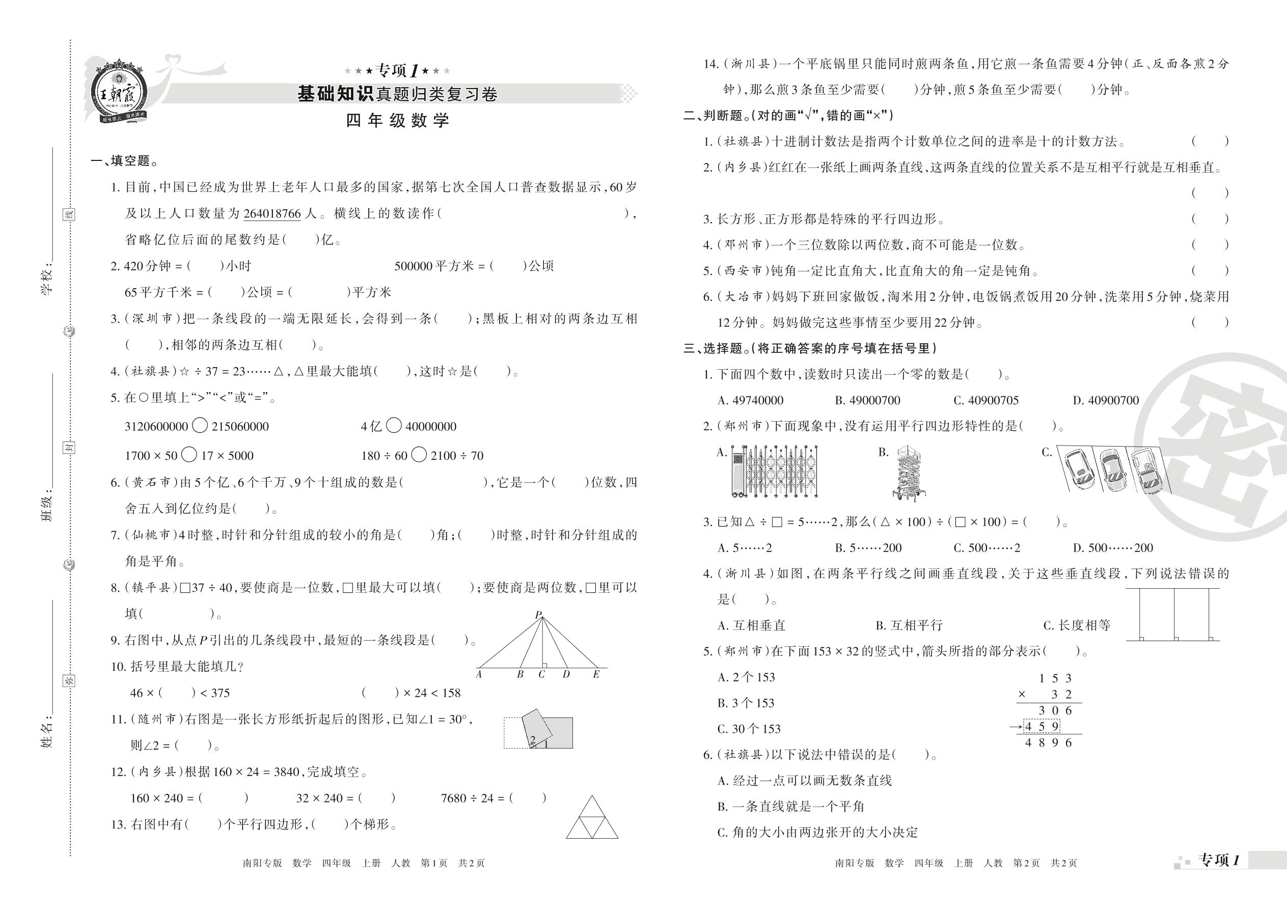 王朝霞期末专项卷——基础知识真题归类复习卷四年级上册数学(人教版)_R211201111804954【1】