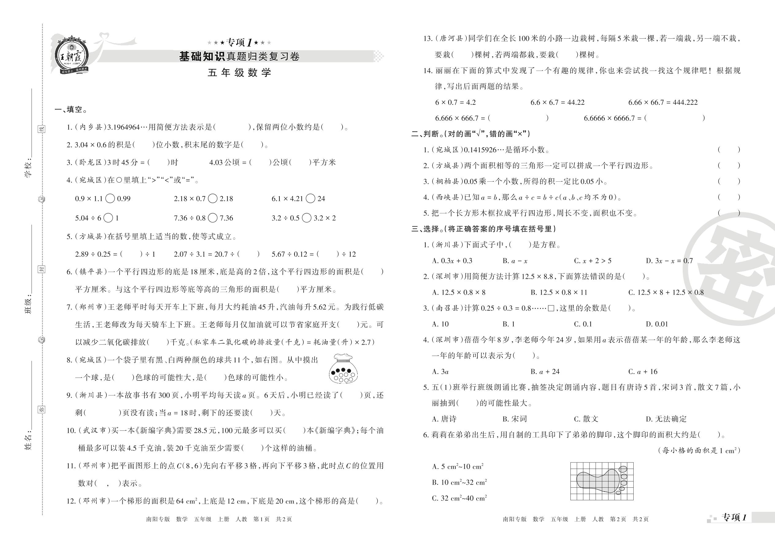 王朝霞期末专项卷——基础知识真题归类复习卷五年级上册数学(人教版)_R211201112050510【1】