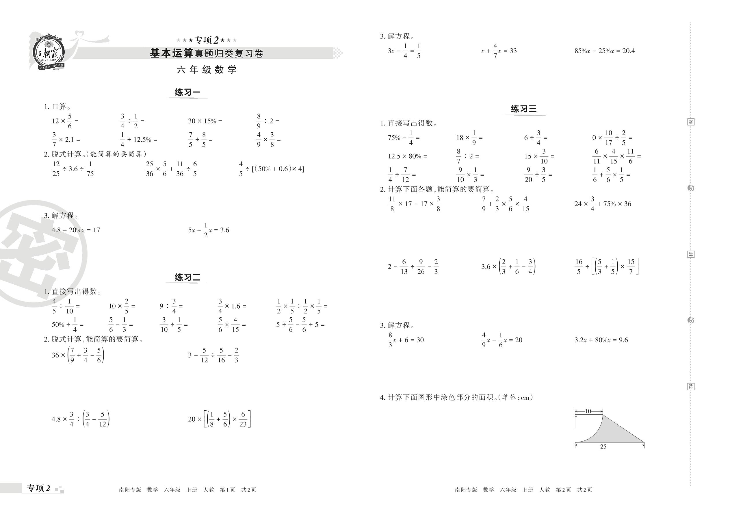 王朝霞期末专项卷——基本运算真题归类复习卷六年级上册数学(人教版)_R211201112323200【2】