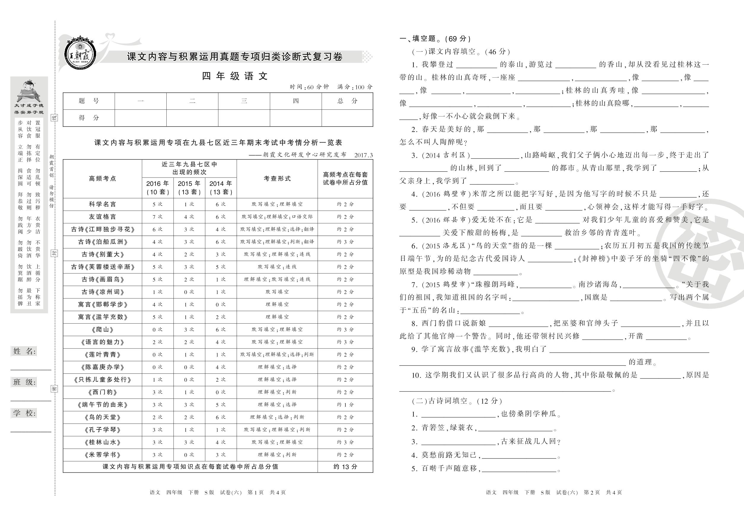 王朝霞期末专项卷四年级下册语文(S版)_R210801204500【6】