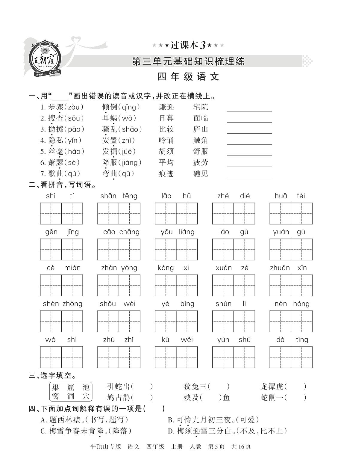 王朝霞期末过课本——第三单元基础知识梳理练四年级上册语文(人教版)_R211201135406095【3】
