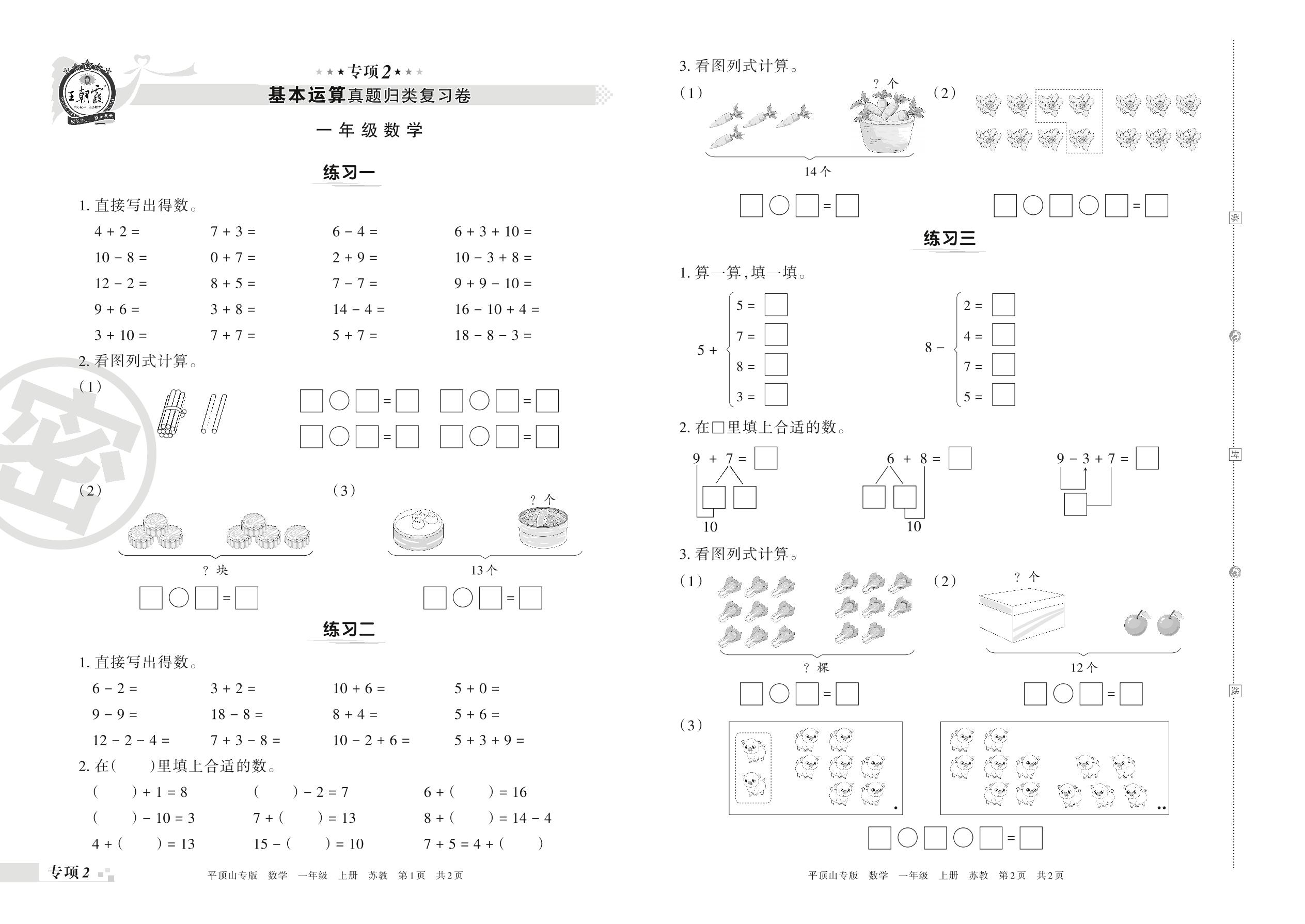 王朝霞期末专项卷——基本运算真题归类复习卷一年级上册数学(苏教版)_R211201140809671【2】