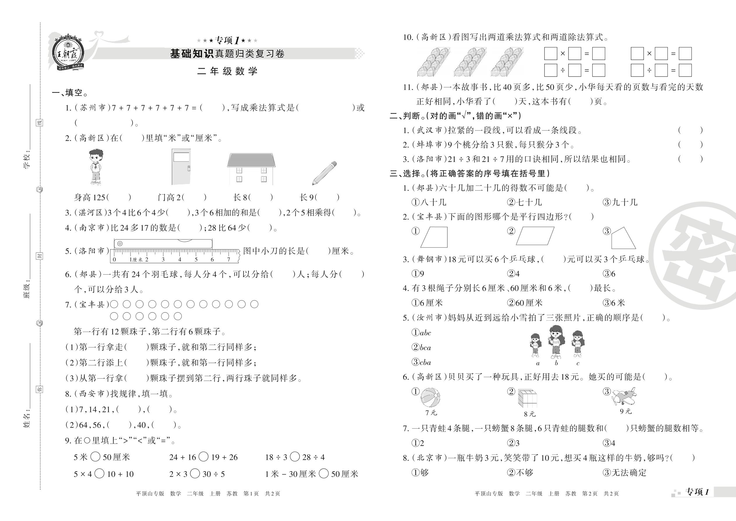 王朝霞期末专项卷——基础知识真题归类复习卷二年级上册数学(苏教版)_R211201141055856【1】