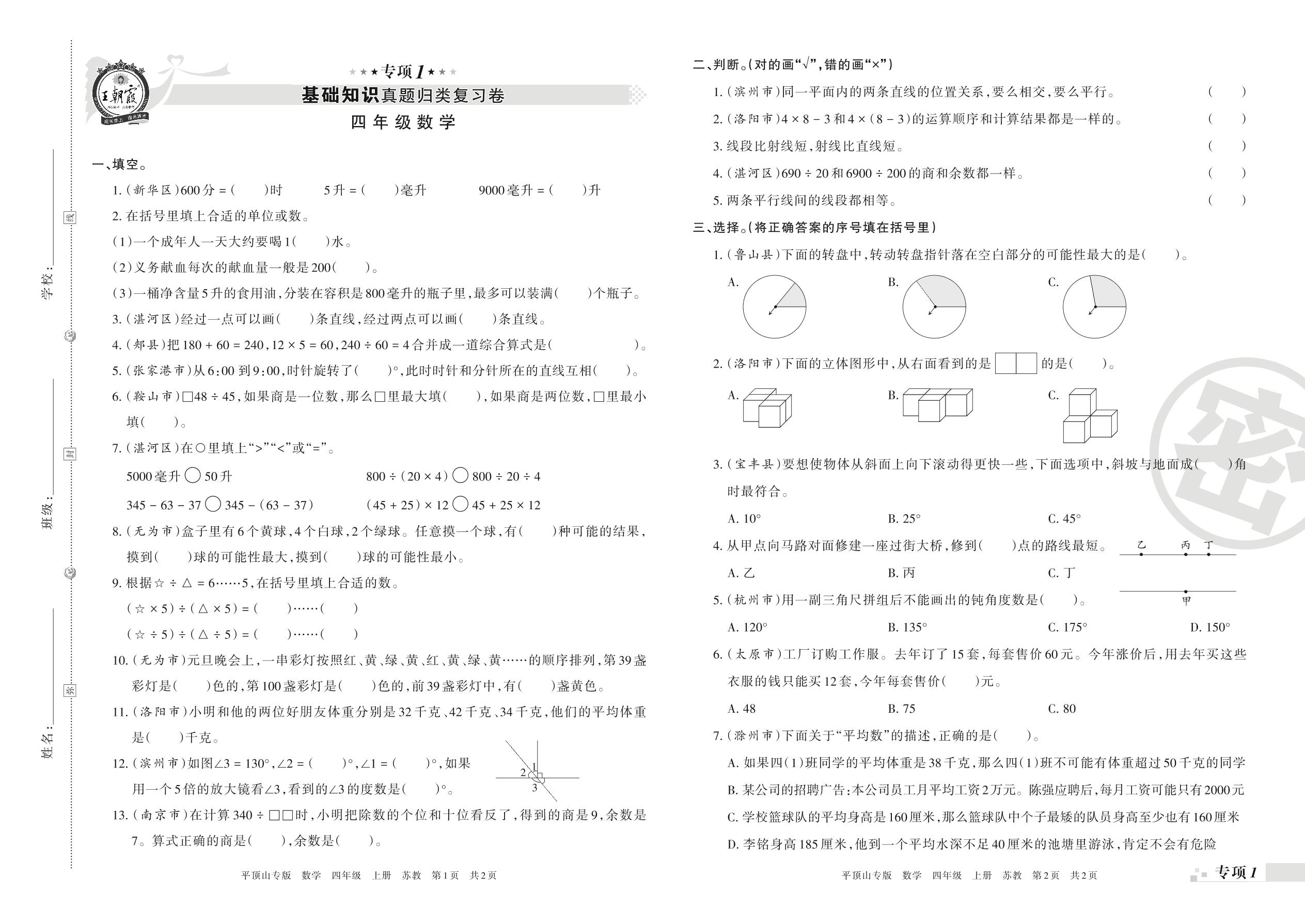 王朝霞期末专项卷——基础知识真题归类复习卷四年级上册数学(苏教版)_R211201141730463【1】