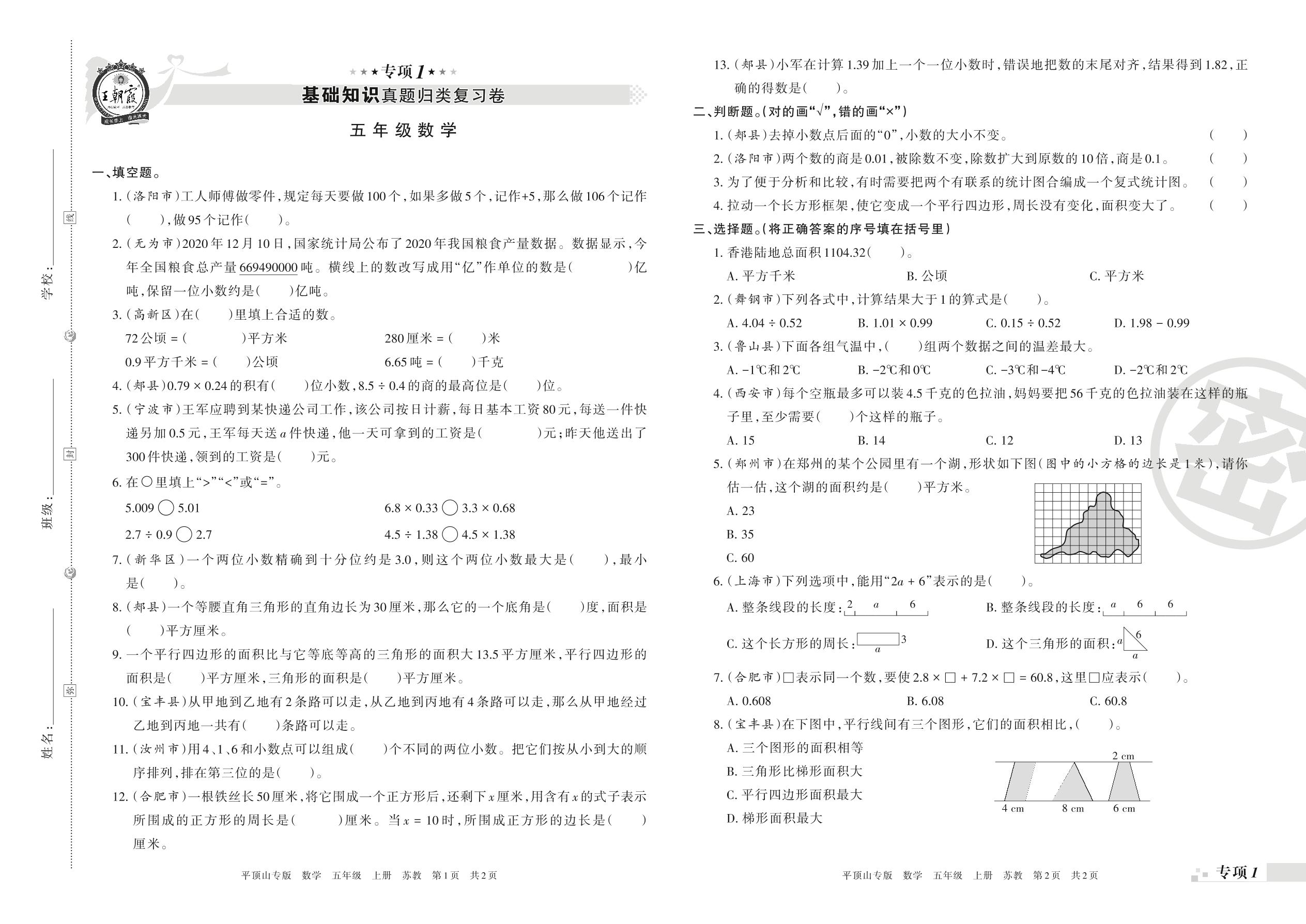 王朝霞期末专项卷——基础知识真题归类复习卷五年级上册数学(苏教版)_R211201142023311【1】