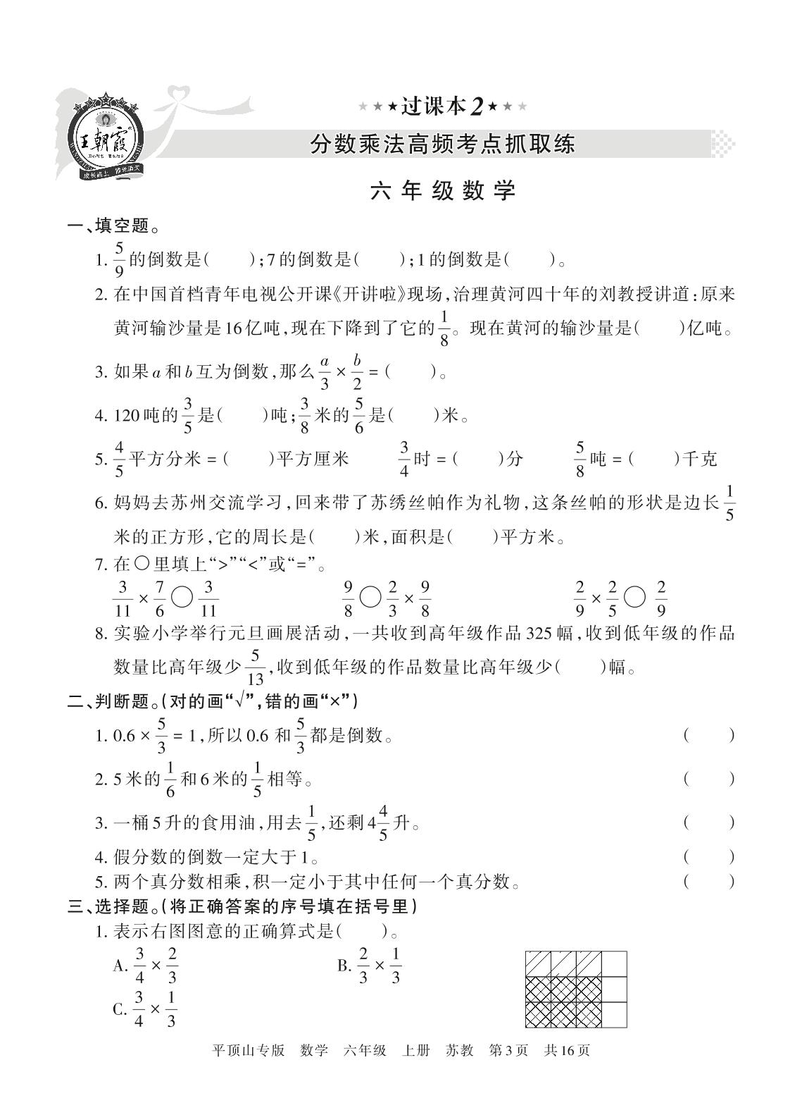 王朝霞期末过课本——分数乘法高频考点抓取练六年级上册数学(苏教版)_R211201142330320【2】