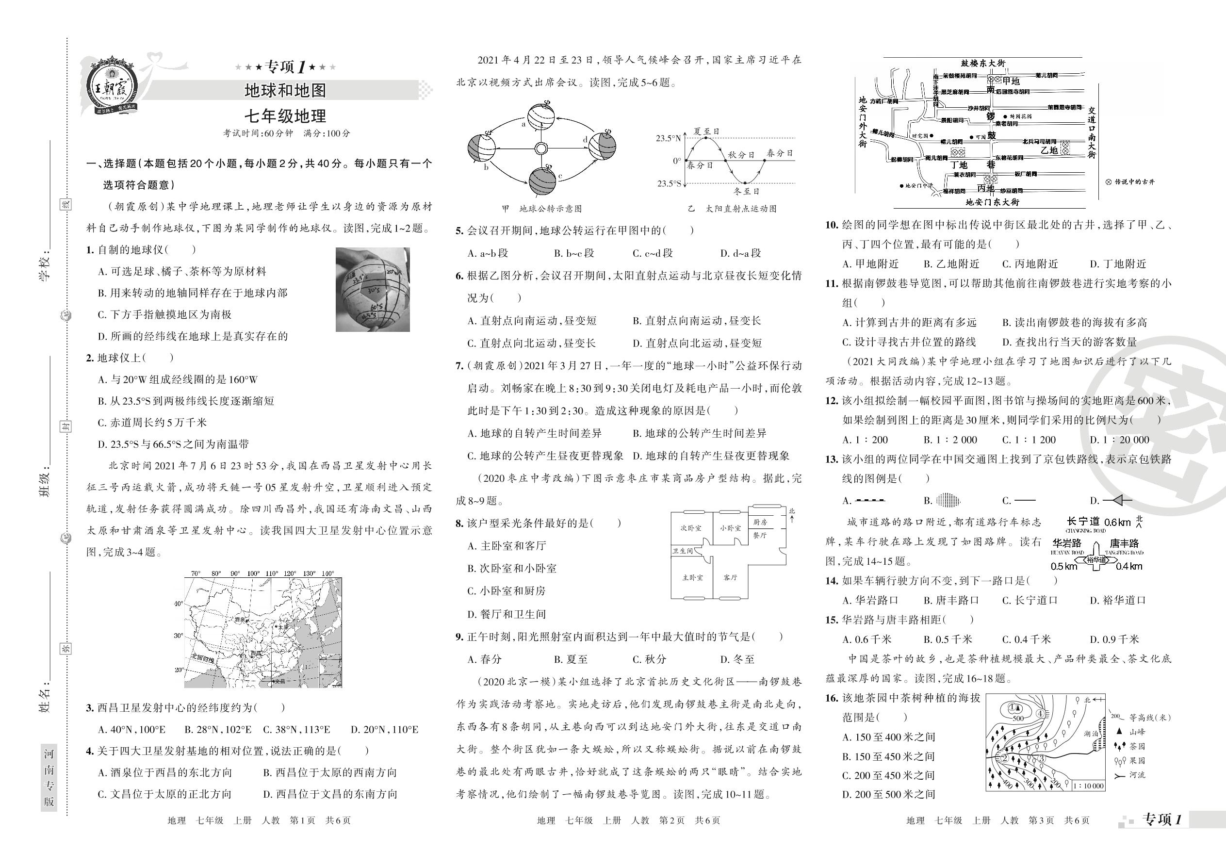 王朝霞期末专项卷——地球和地图七年级上册地理(人教版)【1】