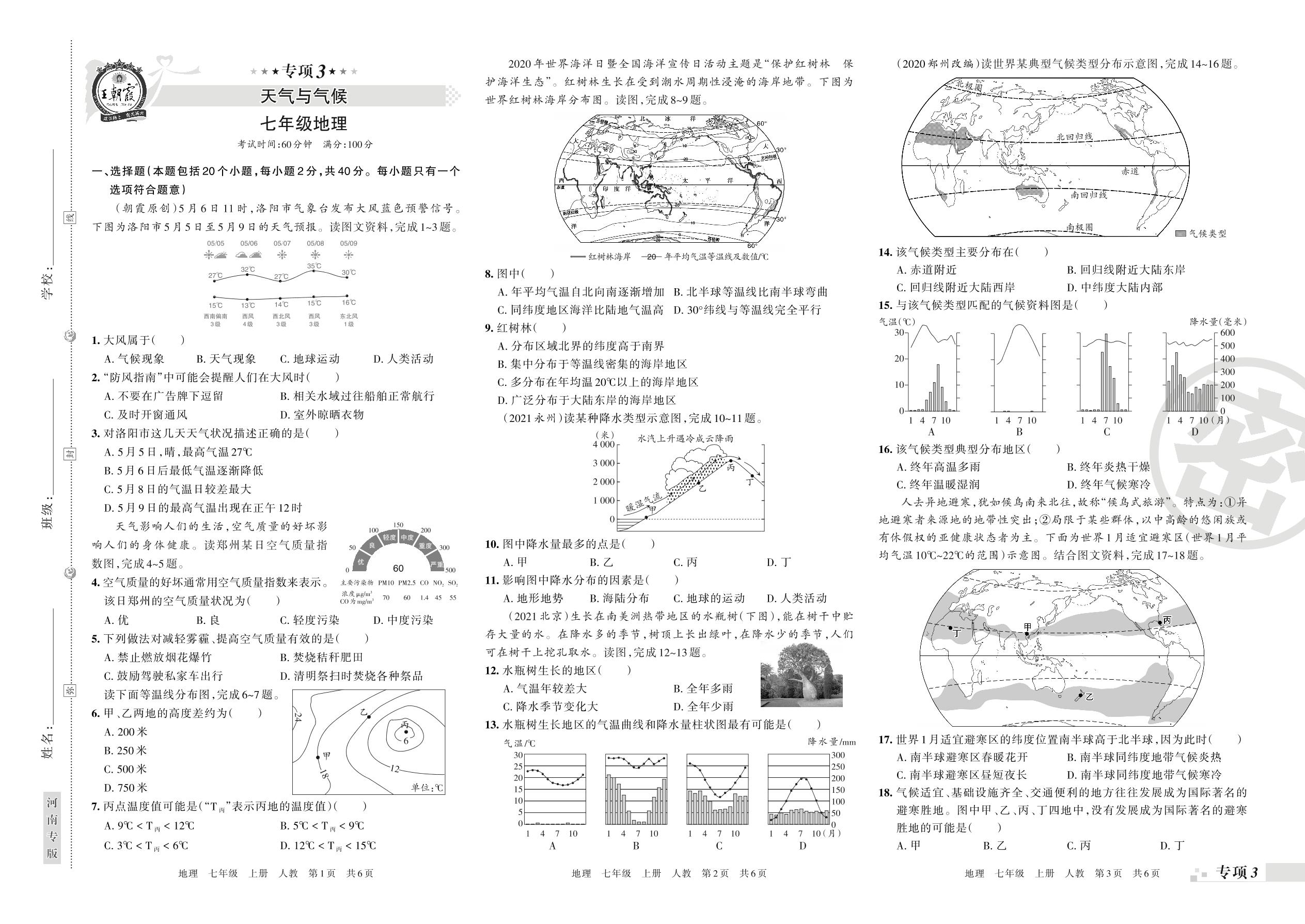 王朝霞期末专项卷——天气与气候七年级上册地理(人教版)【3】