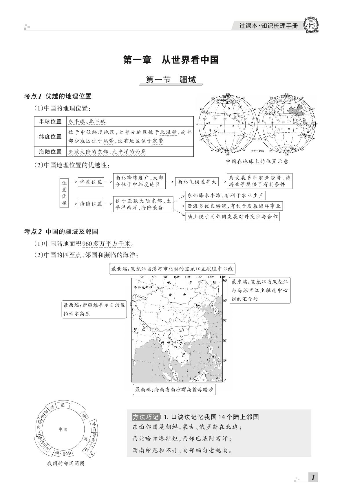 王朝霞期末过课本——知识梳理手册八年级上册地理(人教版)