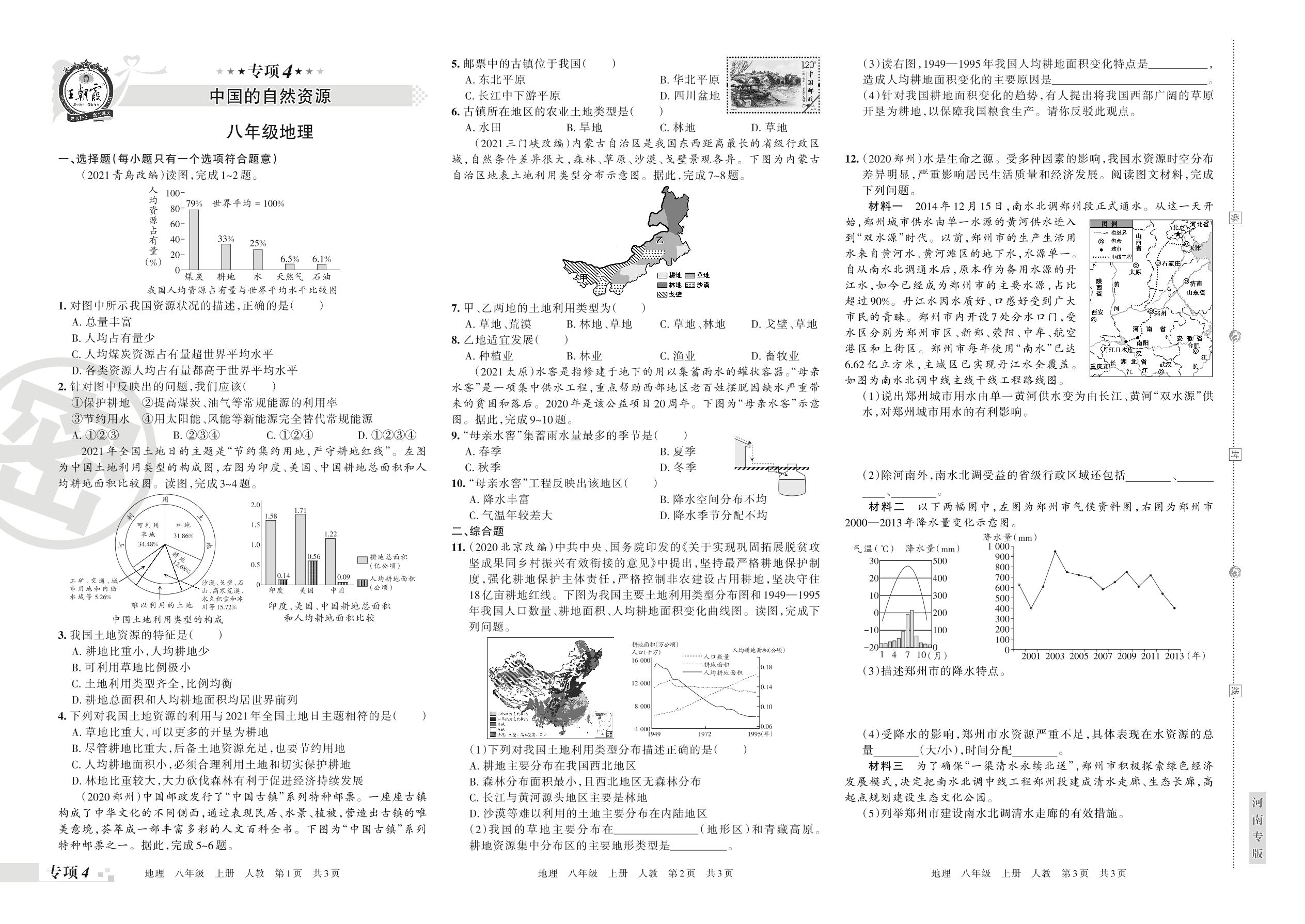王朝霞期末专项卷——中国的自然资源八年级上册地理(人教版)【4】