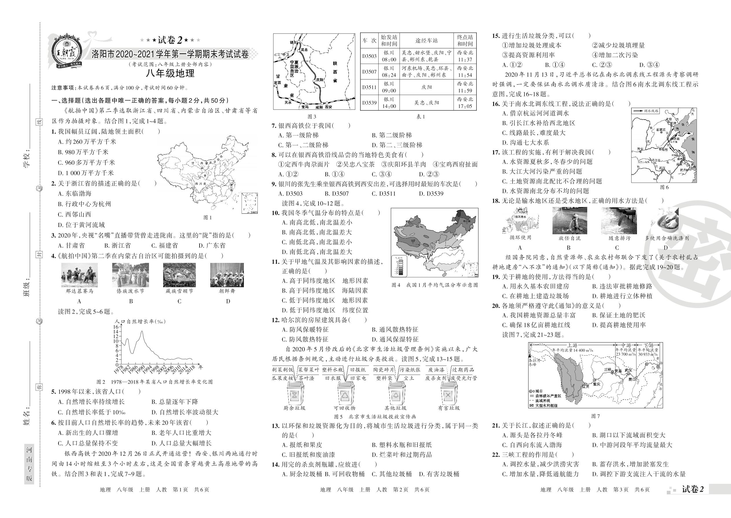 洛阳市2020~2021学年第一学期期末考试试卷八年级地理(人教版)【2】