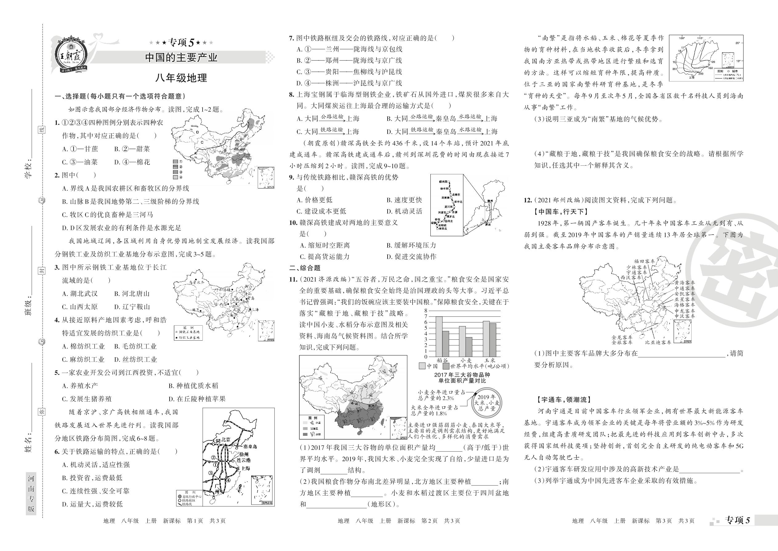 王朝霞期末专项卷——中国的主要产业八年级上册地理(新课标版)【5】