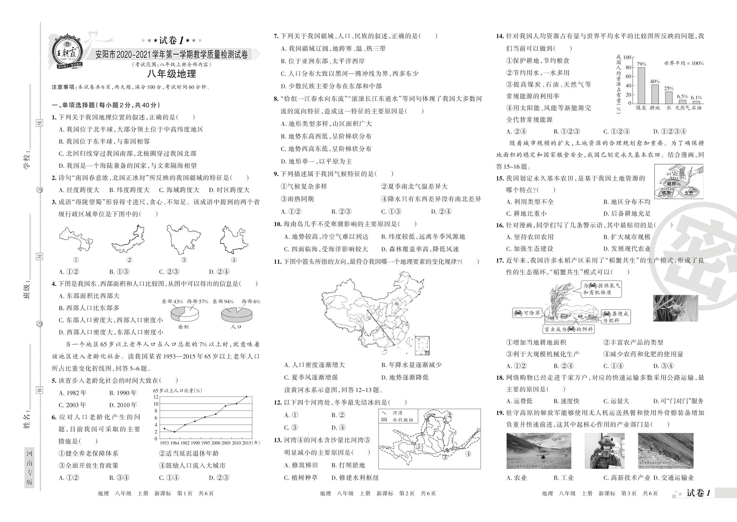 安阳市2020~2021学年第一学期教学质量检测试卷八年级地理(新课标版)【1】