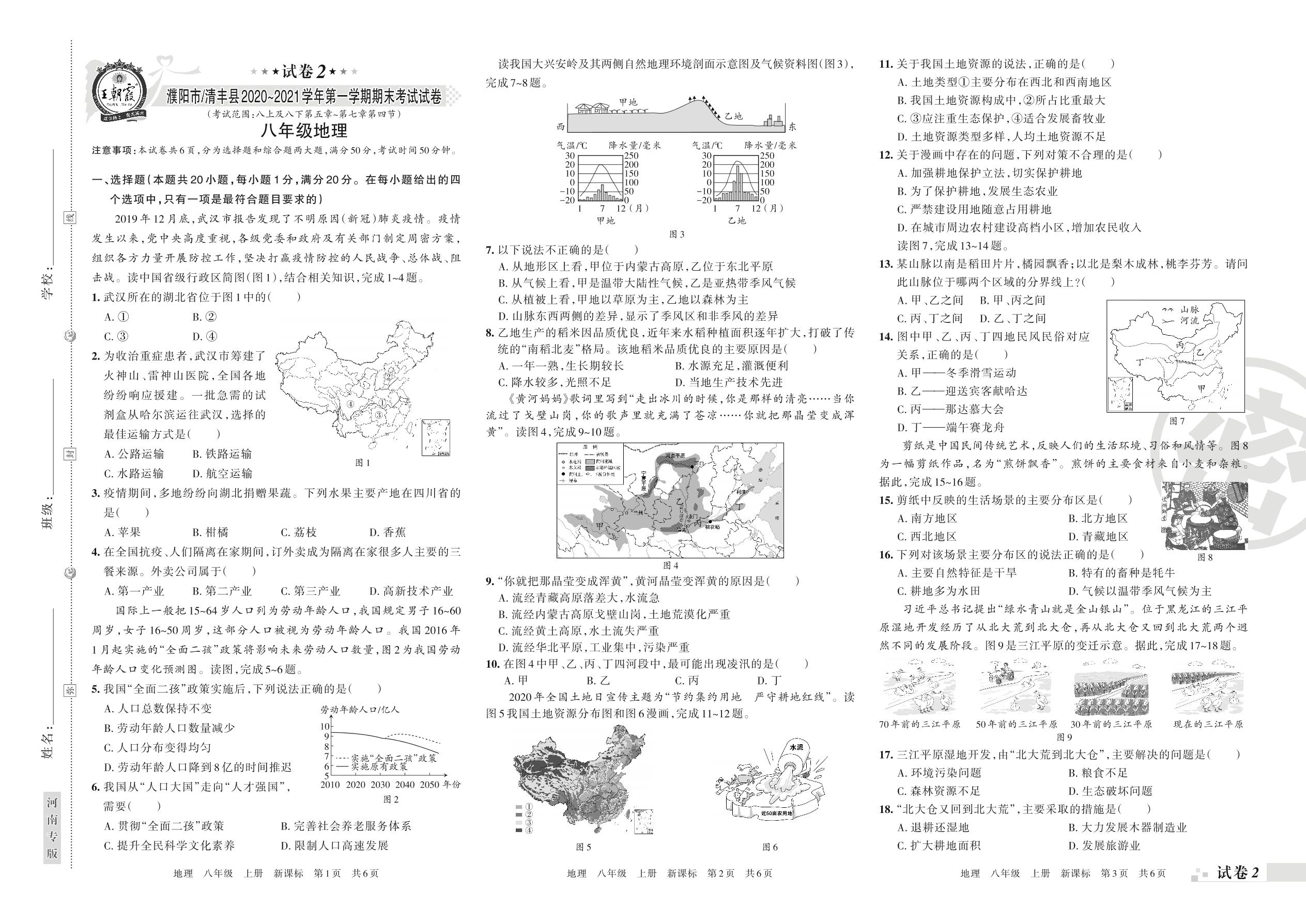 濮阳市、清丰县2020~2021学年第一学期期末考试试卷八年级地理(新课标版)【2】
