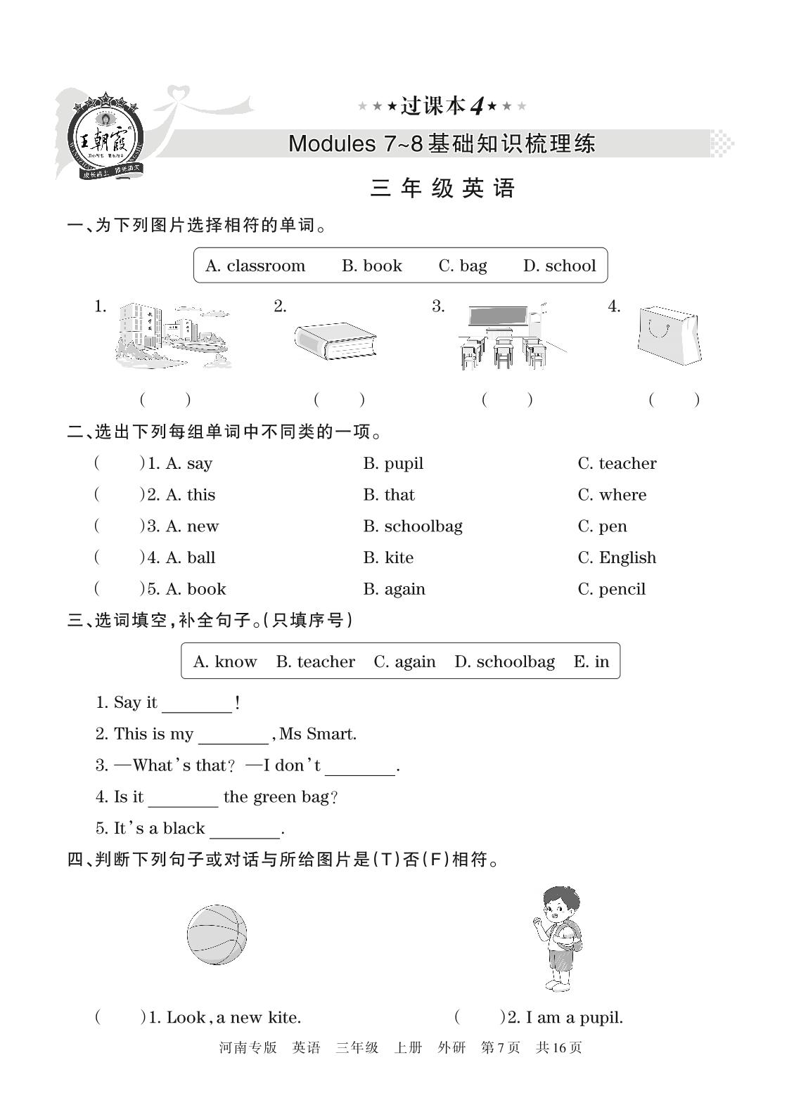 王朝霞期末过课本——Modules 7~8基础知识梳理练三年级上册英语(外研版)_R211202134123050【4】