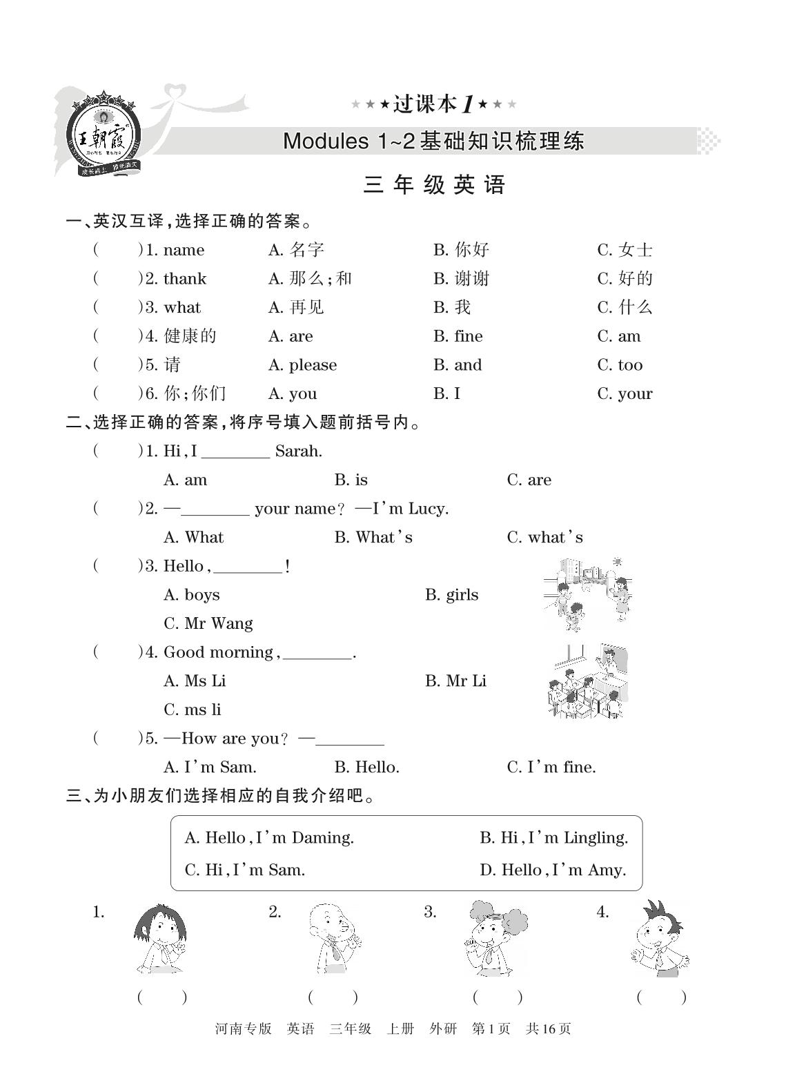 王朝霞期末过课本——Modules 1~2基础知识梳理练三年级上册英语(外研版)_R211202134123082【1】