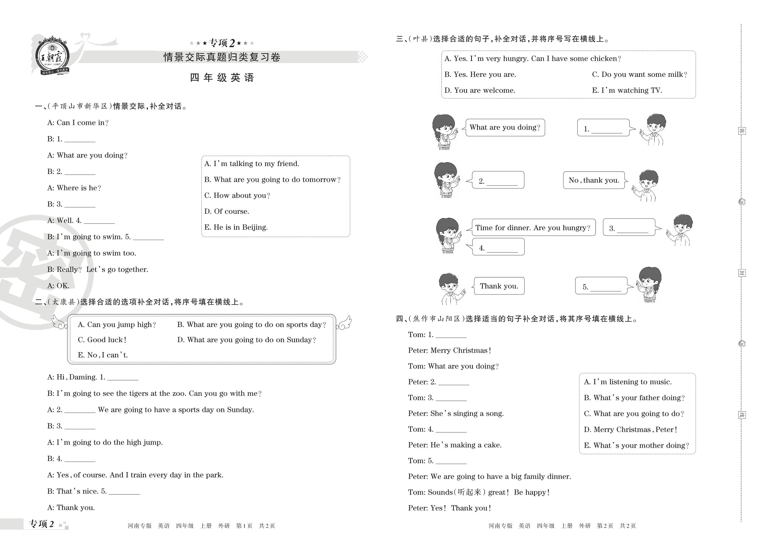 王朝霞期末专项卷——情景交际真题归类复习卷四年级上册英语(外研版)_R211202134506294【2】