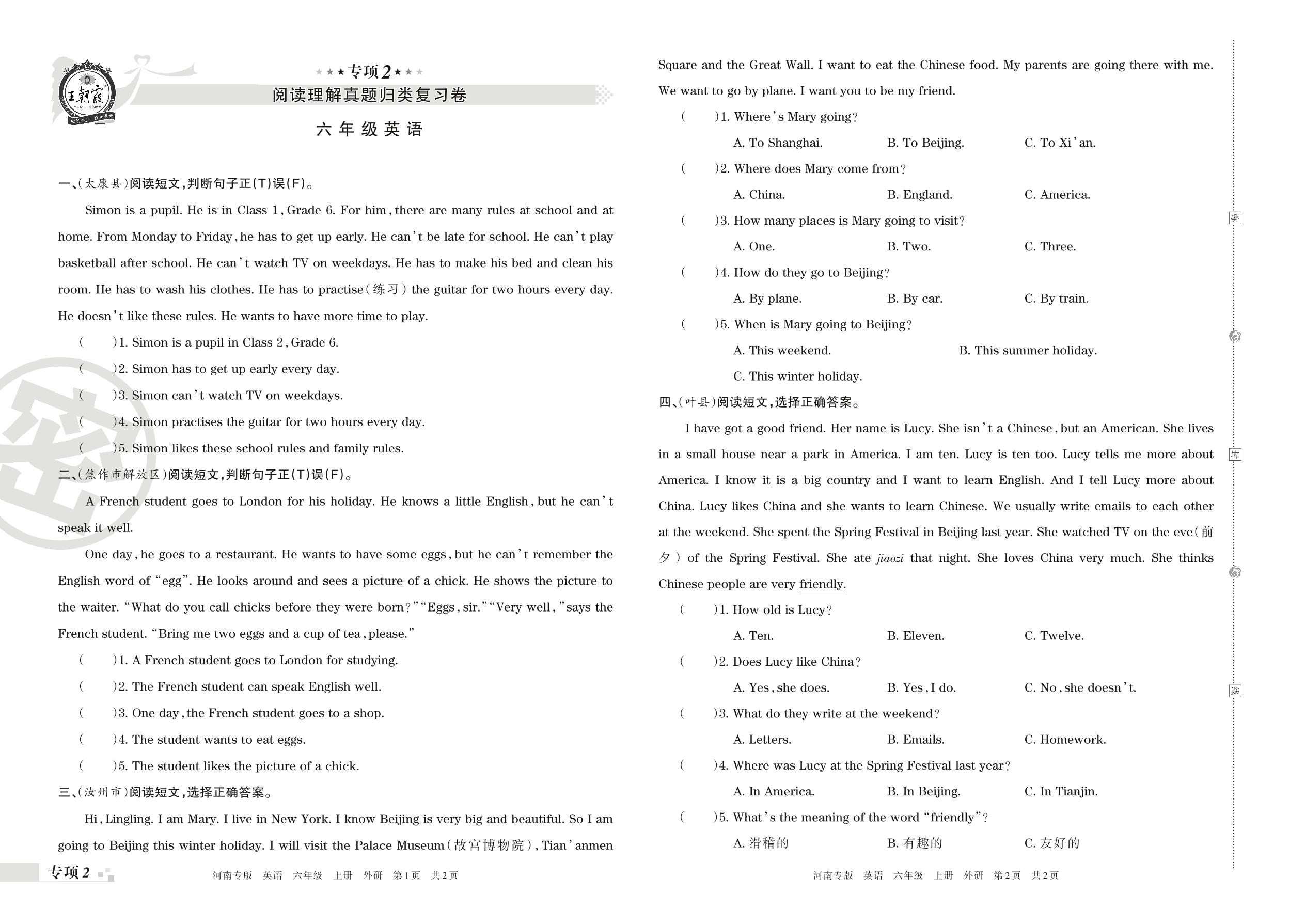 王朝霞期末专项卷——阅读理解真题归类复习卷六年级上册英语(外研版)_R211202135318827【2】