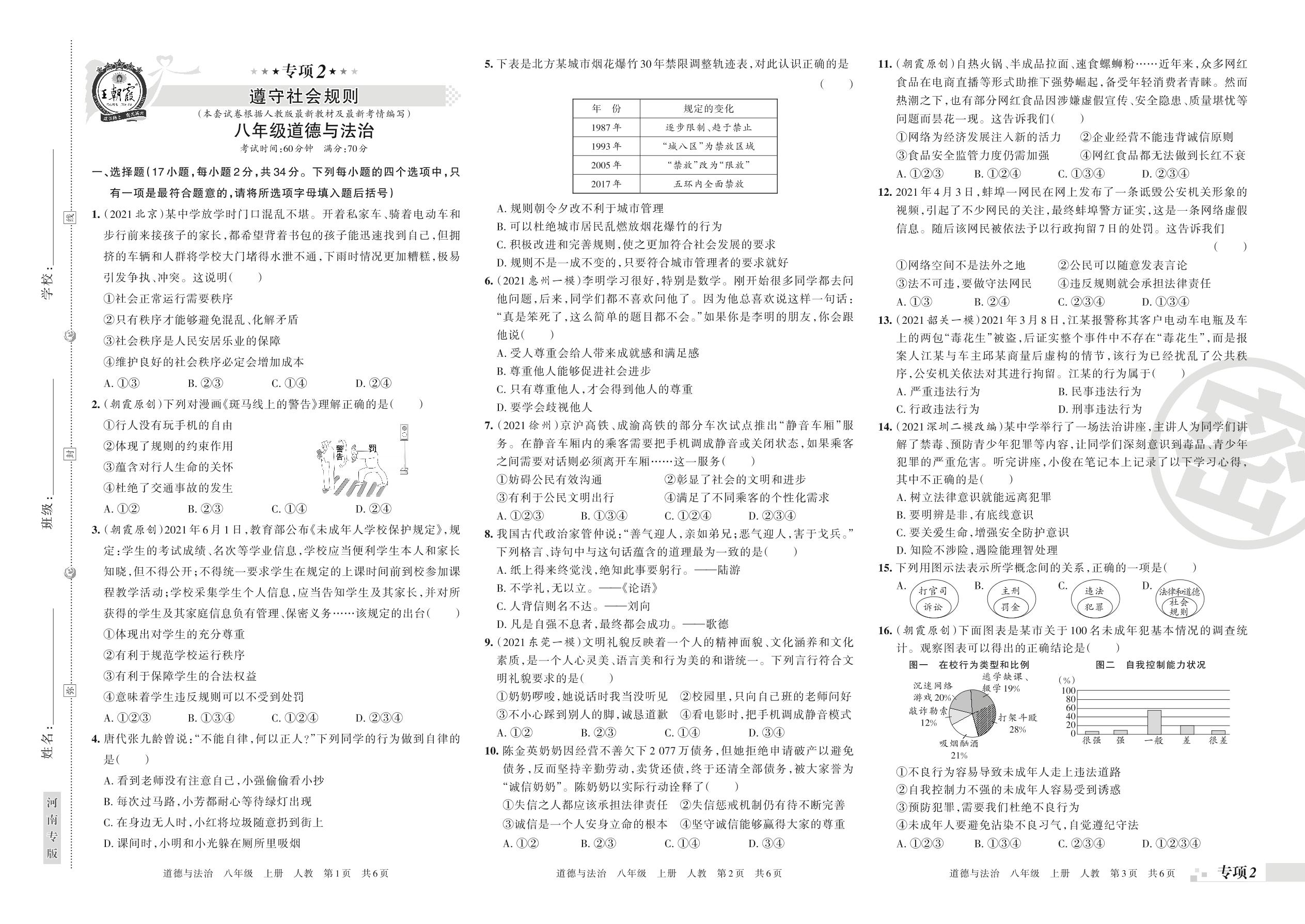 王朝霞期末专项卷——遵守社会规则八年级上册道德与法治(人教版)_R211203135510233【2】