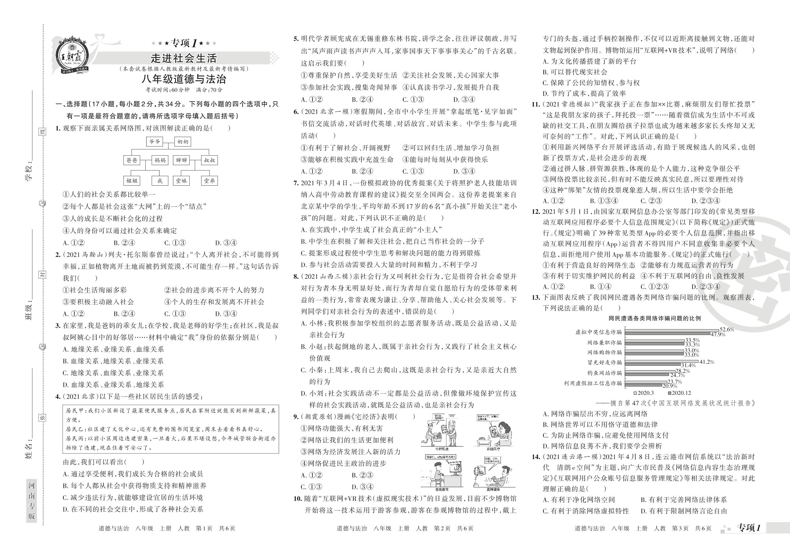 王朝霞期末专项卷——走进社会生活八年级上册道德与法治(人教版)_R211203135510462【1】