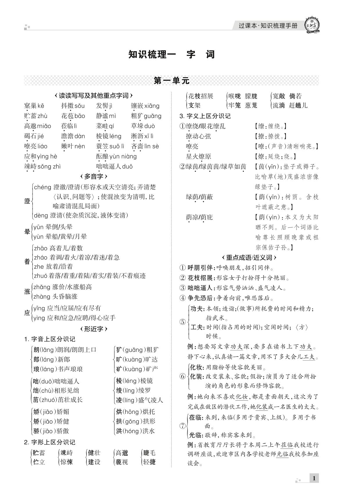 王朝霞期末过课本——知识梳理一 字词七年级上册语文(人教版)_R211203140148769【1】